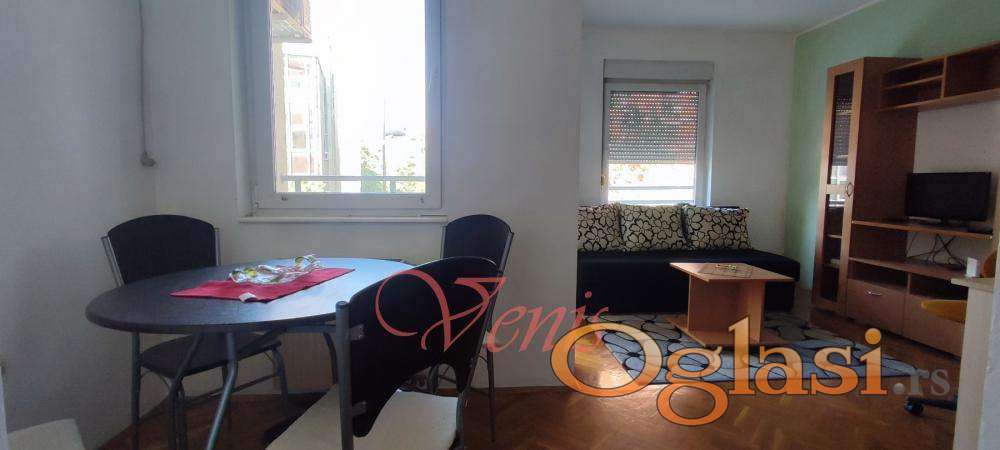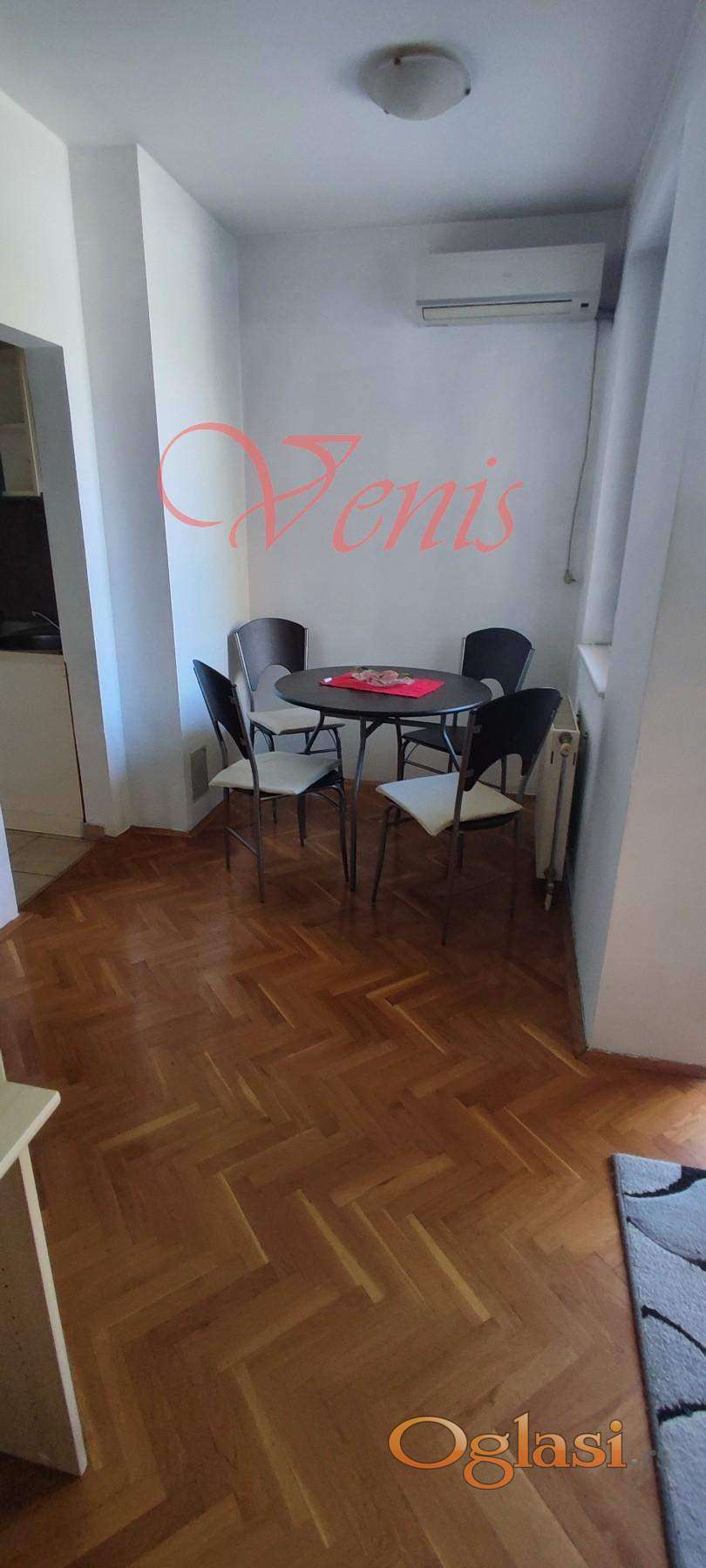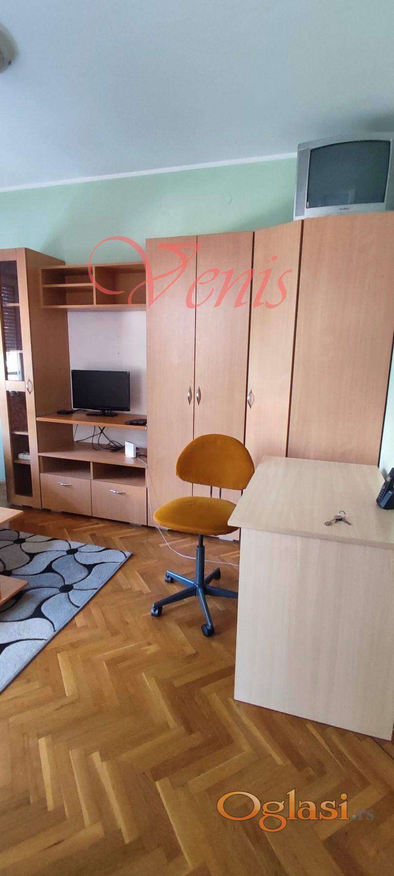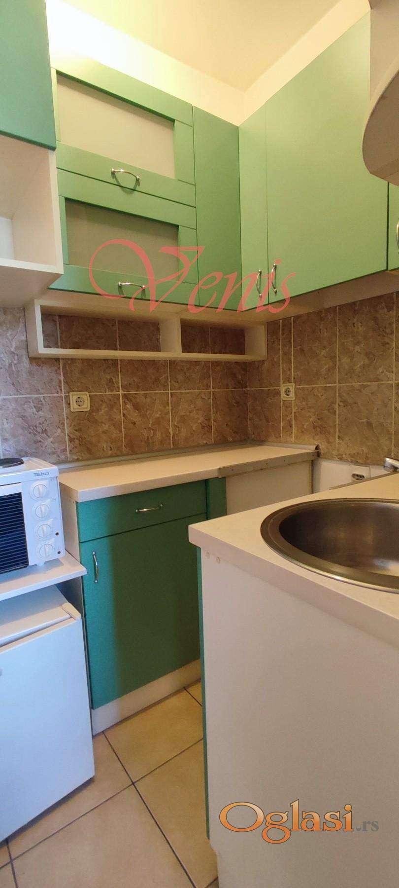 * VENIS Nekretnine * izdajemo BULEVAR OSLOBODJENJA 25 m2 garsonjeru nameštenu, ul.Novosadskog Sajma, 1sprat od 6, lift, terasa, cg,klima, vm,