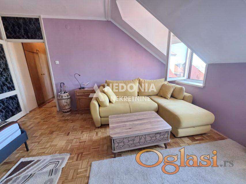 Dovoljno daleko od gradske vreve i smoga, bez problema sa parkiranjem, na samo dvadeset minuta vožnje udaljeno od strogog centra grada, nalazi se ovaj jednosoban stan za izdavanje. Smešten je na petom spratu zgrade od bele fasadne cigle koja je uredna i održavana. Infrastruktura je kompletna, u blizini se nalazi škola, vrtić, pijaca, marketi kao i svi ostali neophodni sadržaji za udoban život. Saobraćajna povezanost sa ostalim delovima grada je odlična. Stan je renoviran i lepo održavan. Sastoji se iz hodnika, kuhinje, dnevnog boravka sa spavaćim delom i kupatila. Izdaje se namešten. Brzo useljiv. Depozit obavezan.