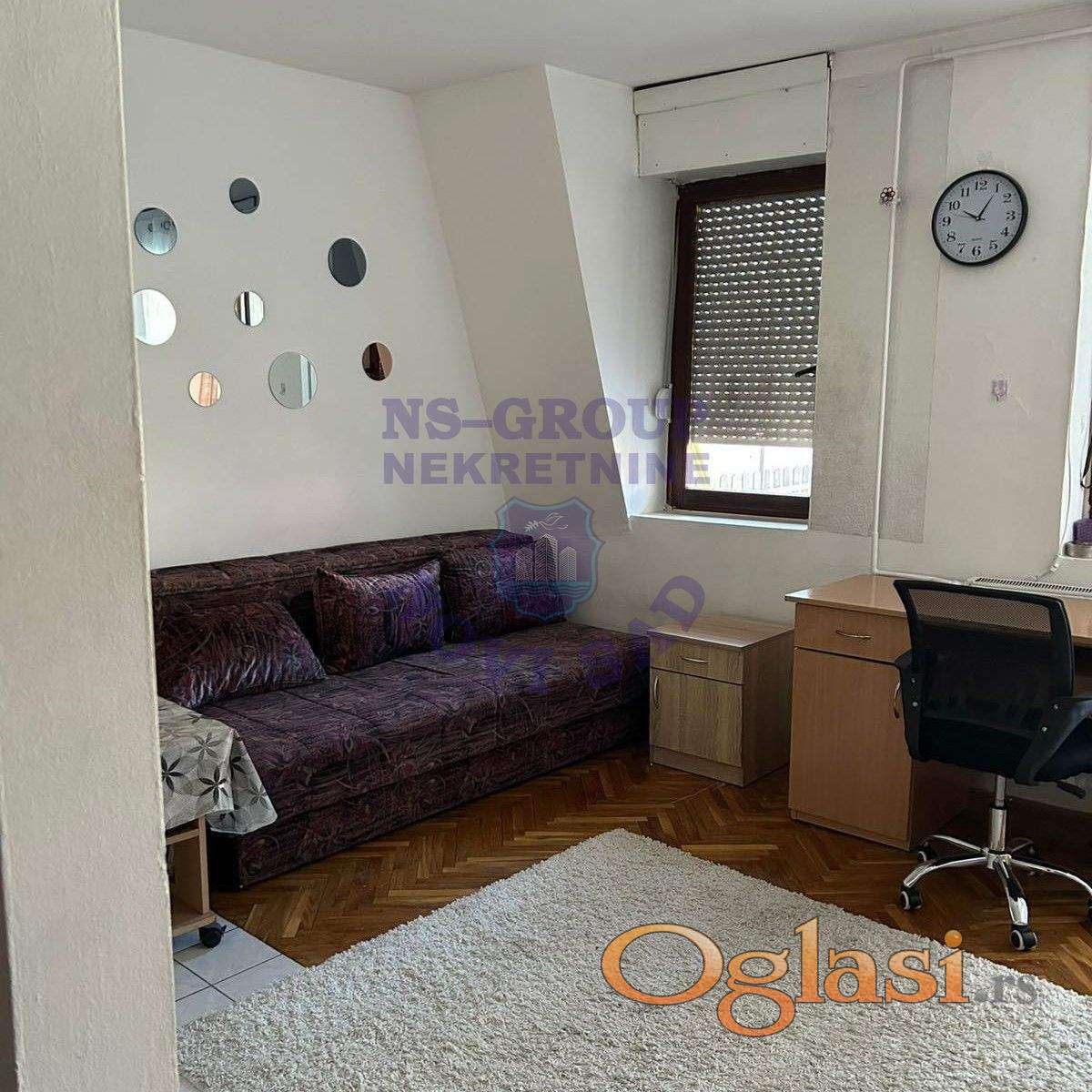 Sjajna garsonjera na Socijalnom. Nalazi se na četvrtom spartu, a prostire se na površini od 32m2. U potpunosti je nameštena, a poseduje i dvorišno orijentisanu komfornu terasu. U cenu mesečnog zakupa su uračunati i mesečni troškovi. Za više informacija pozovite naše agente.