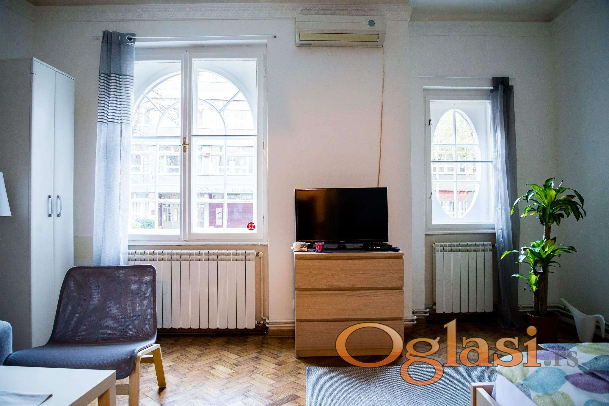 Namešten stan od 50 m2 u visokom prizemlju. Izdaje se i prazan za poslovni prostor. Centralno grejanje, klima. Depozit u visini jedne mesečne zakupnine. Agencijska provizija 50% od ugovorene cene zakupa.