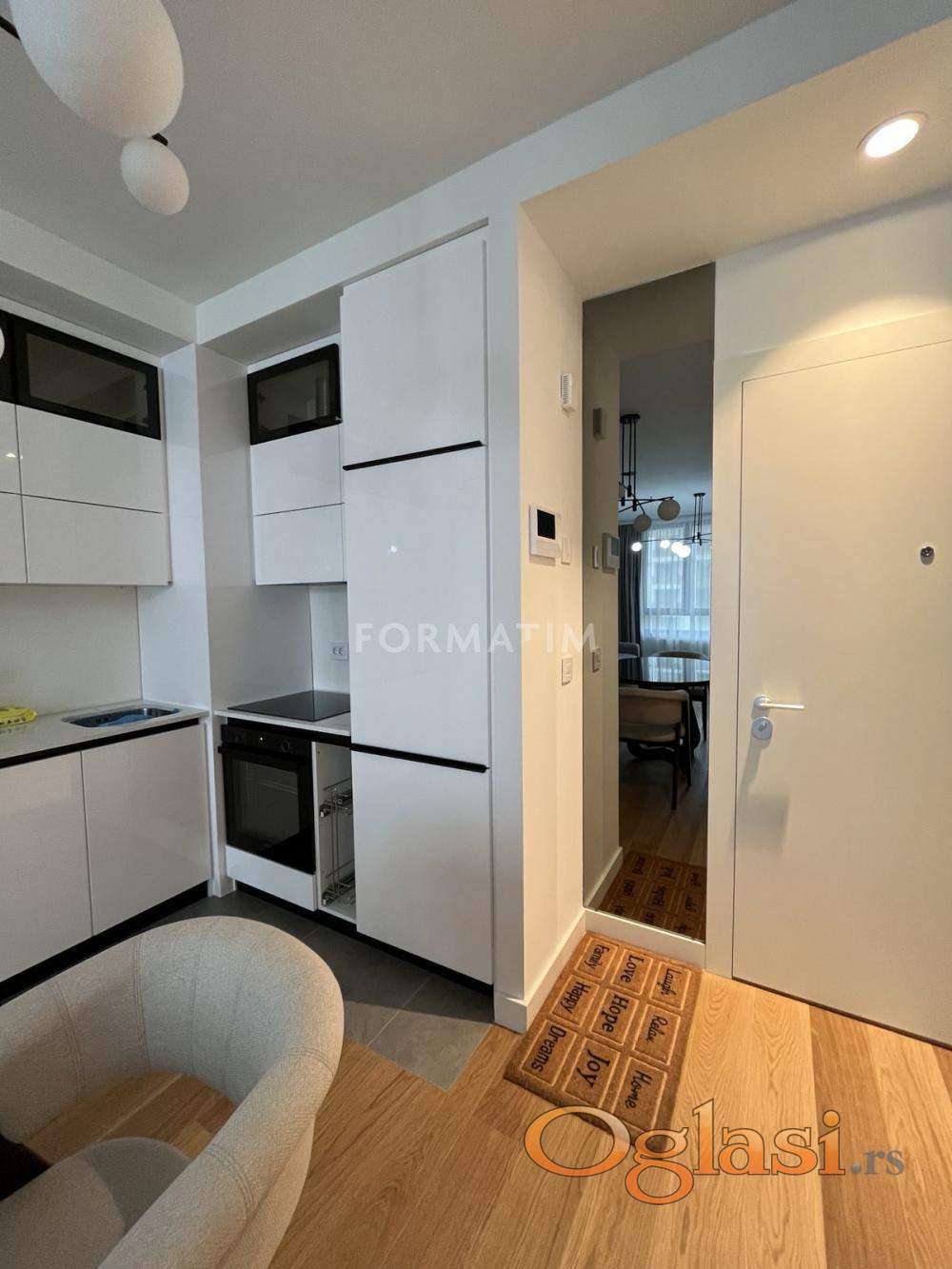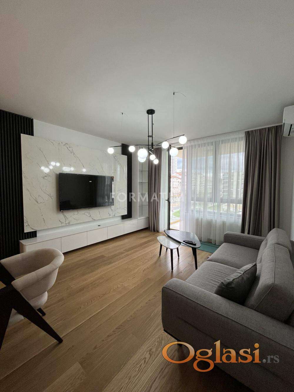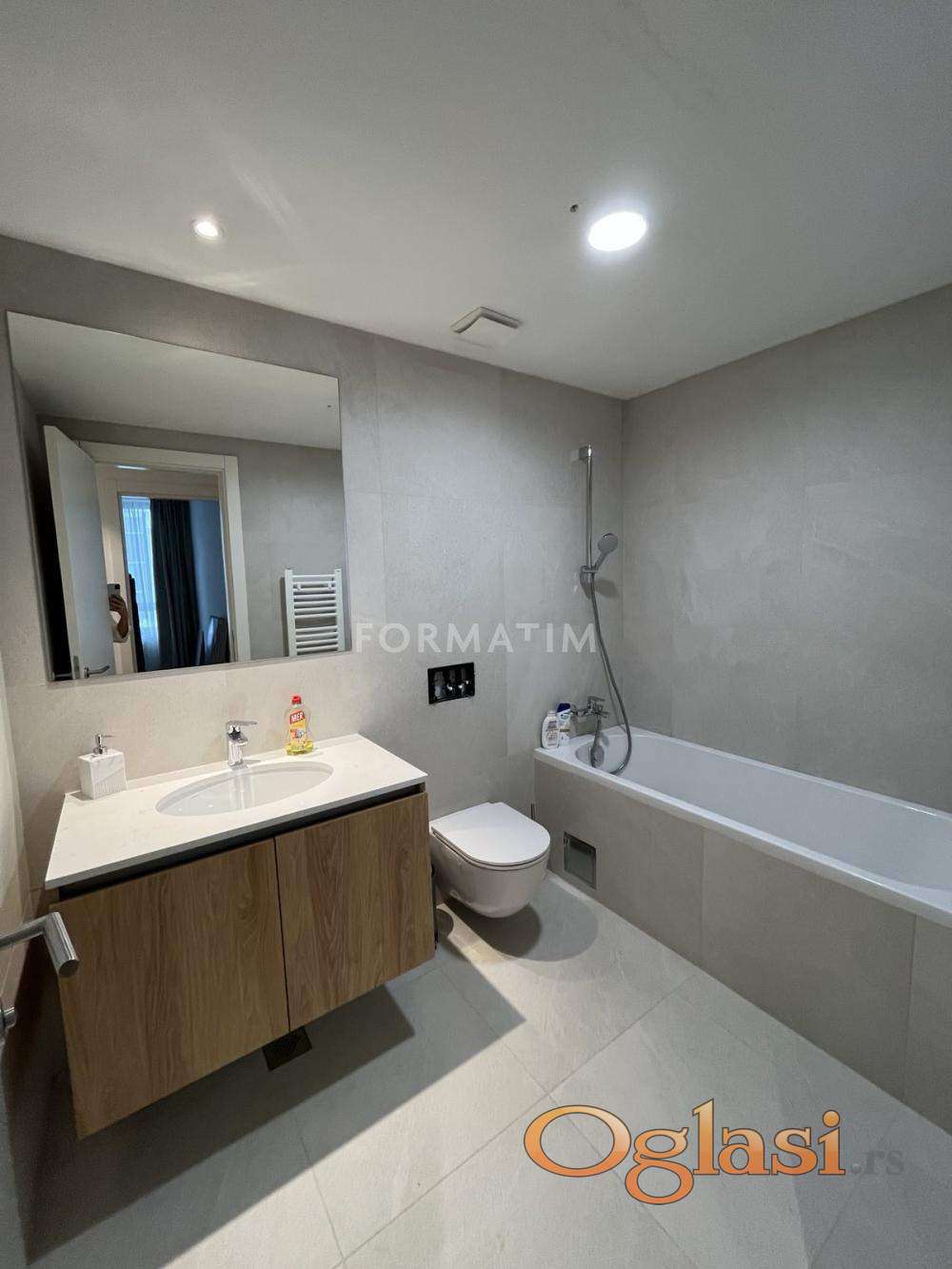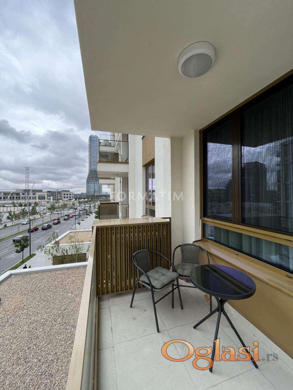 Belgrade on the water, Nikolaja Kravcova street. Brand new, unoccupied 3.0 apartment, 84m². Two separate bedrooms, two bathrooms. CG, internet, KATV, elevator. Natuzzi furniture, ready to move in. A garage space is included in the rental price.
