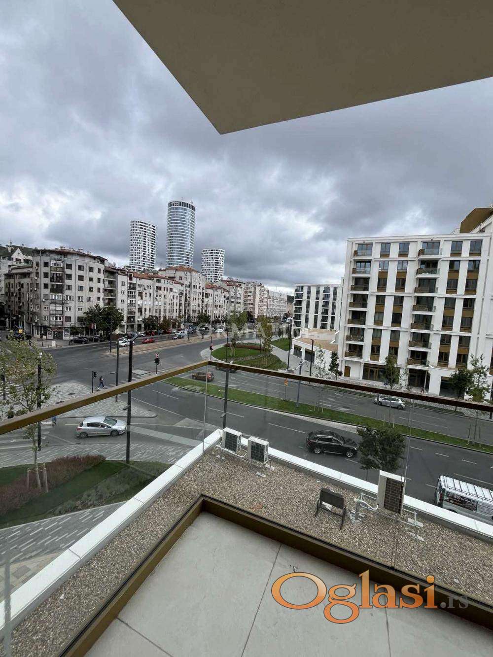 Beograd na vodi, ulica Nikolaja Kravcova. Potpuno nov, neuseljavan 3.0 stan, površine 84m². Dve odvojene spavaće sobe, dva kupatila. CG, internet, KATV, lift. Natuzzi nameštaj, odmah useljiv. U cenu zakupa je uključeno i garažno mesto.