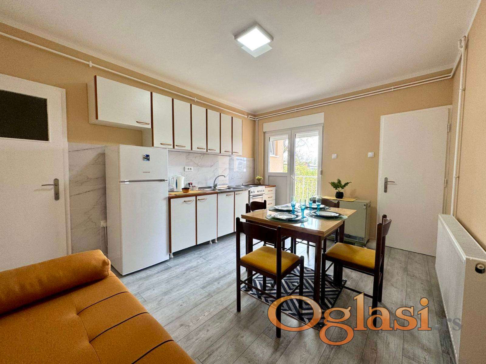 Izdaje se kompletno renoviran dvosoban stan površine 43 m² na 2. spratu trospratne zgrade bez lifta, u neposrednoj blizini Medicinskog fakulteta, Kliničkog centra i Novosadskog sajma.