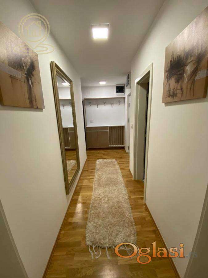 Izdaje se luksuzan dvoiposoban stan od 66m² Stan se nalazi na 5. spratu novije zgrade (2020. godište) sa liftom, interfon sistemom i video nadzorom. Struktura i raspored: Stan poseduje ulazni hodnik, dve spavaće sobe, kuhinju sa trpezarijom i dnevnim boravkom, prostranu terasu sa pogledom na ulicu, kupatilo i poseban toalet. Opremljenost: Stan je kompletno namešten i moderno opremljen – TV, klima, inverter klima, veš mašina, kuhinjski elementi, frižider, zamrzivač, šporet, rerna, ležaj, plakari. Vrata su sigurnosna. Grejanje i troškovi: Grejanje je etažno, uz dodatnu inverter klimu. Troškovi struje su po potrošnji – u letnjem periodu iznose u proseku 4.000–6.000 RSD, dok su u zimskom periodu oko 13.000–15.000 RSD (zavisno od potrošnje). Dodatne informacije: Kablovsku i internet zakupac sam prijavljuje ili prenosi svoj ugovor. Prednost imaju zakupci bez kućnih ljubimaca. Izdavanje je na duži vremenski period, bez vremenskog ograničenja. Agencijska provizija u skladu sa opštim uslovima poslovanja. Kompas nekretine Vaš pouzdan partner u iznajmljivanju i rentiranju nekretnina.