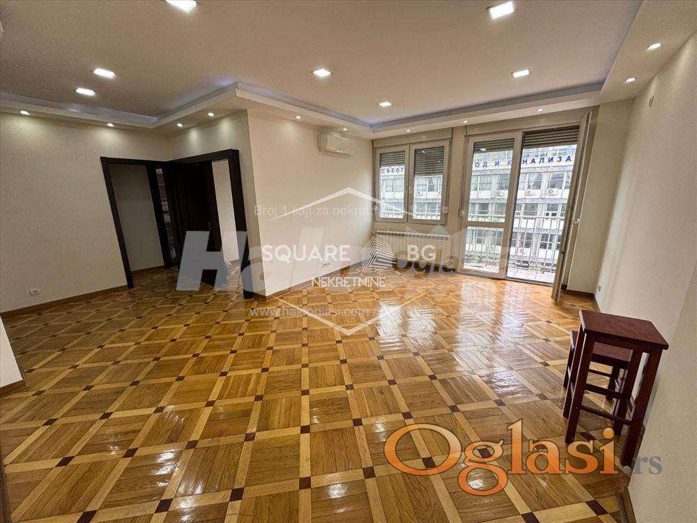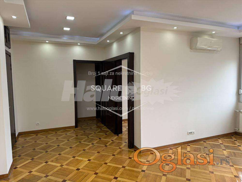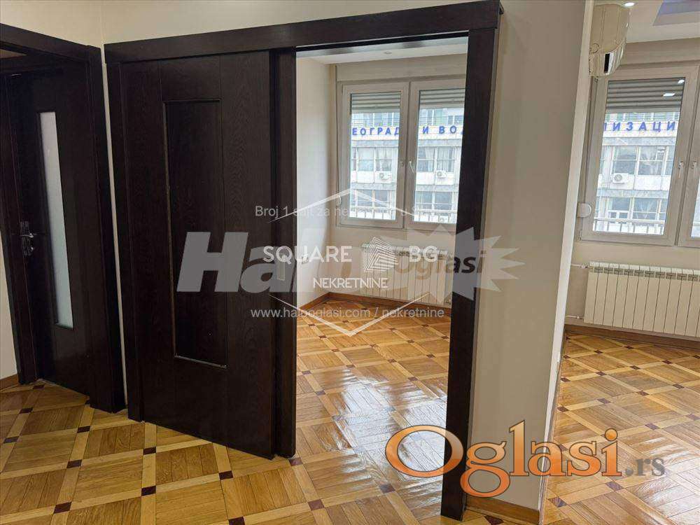 Kancelarijski ili stambeni prostor-kod Londona 45m2. Predivan osunčan stan u odličnoj zgradi sa dva lifta u Kneza Miloša preko puta elektrodistibucije i vodovoda, Na uglu Kneza Miloša sa Kraljice Natalije. 45m2 sa dve kancelarije ili sobe, kupatilom, odvojenom kuhinjom, terasom. klima, predivan pogled na grad i Hram Svetog Save. Bosal sigurnosna vrata. Grejanje na toplane,. Troškovi mesečni za održavanje stana: infostan oko 8500 din, struja po potrošnji+internet u zavisnosti od izabranog paketa. Agencijska provizija 50%