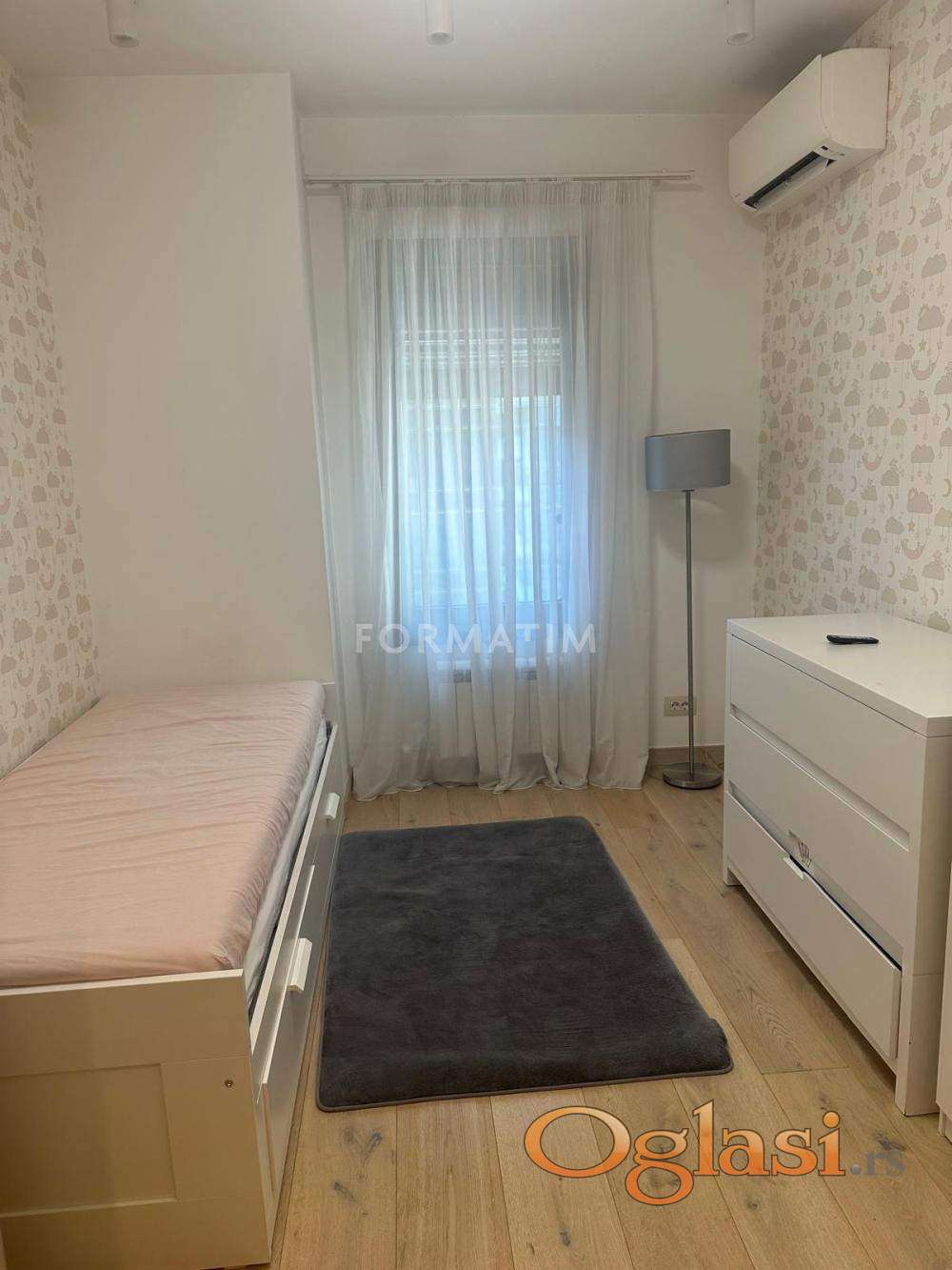 Новый Белград, квартал 23, бульвар Милутина Миланковича. Роскошно меблированная четырёхкомнатная квартира площадью 100 м². В квартире три спальни (одна из них главная), две ванные комнаты, прачечная и терраса. Возможна аренда одного парковочного места за дополнительную плату в размере 100 евро. Квартира свободна с 10.10.2025.