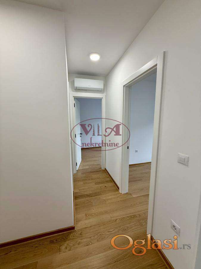 Izdaje se prelep i prostran troiposoban stan na odlicnoj lokaciji sa garaznim mestom. Stan je potpuno nov i do sada neuseljavan. Stan se stastoji iz dnevne sobe, tri spavace sobe u koje se ulazi iz hodnika, takodje poseaduje toalet, odvojeno kupatilo, kao i lepu terasu. Citav stan je orijentisan ka mirnoj ulici. Stan takodje poseduje svoje parking mesto u garazi. Odmah useljivo. Kontakt tel. 0646586099