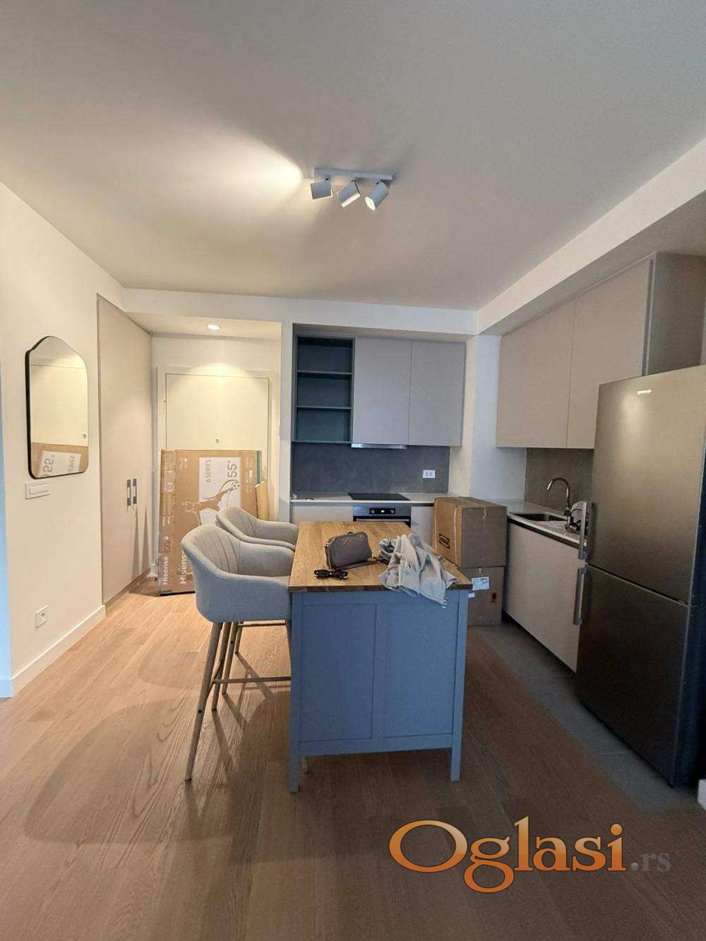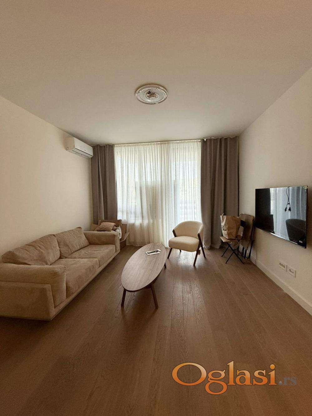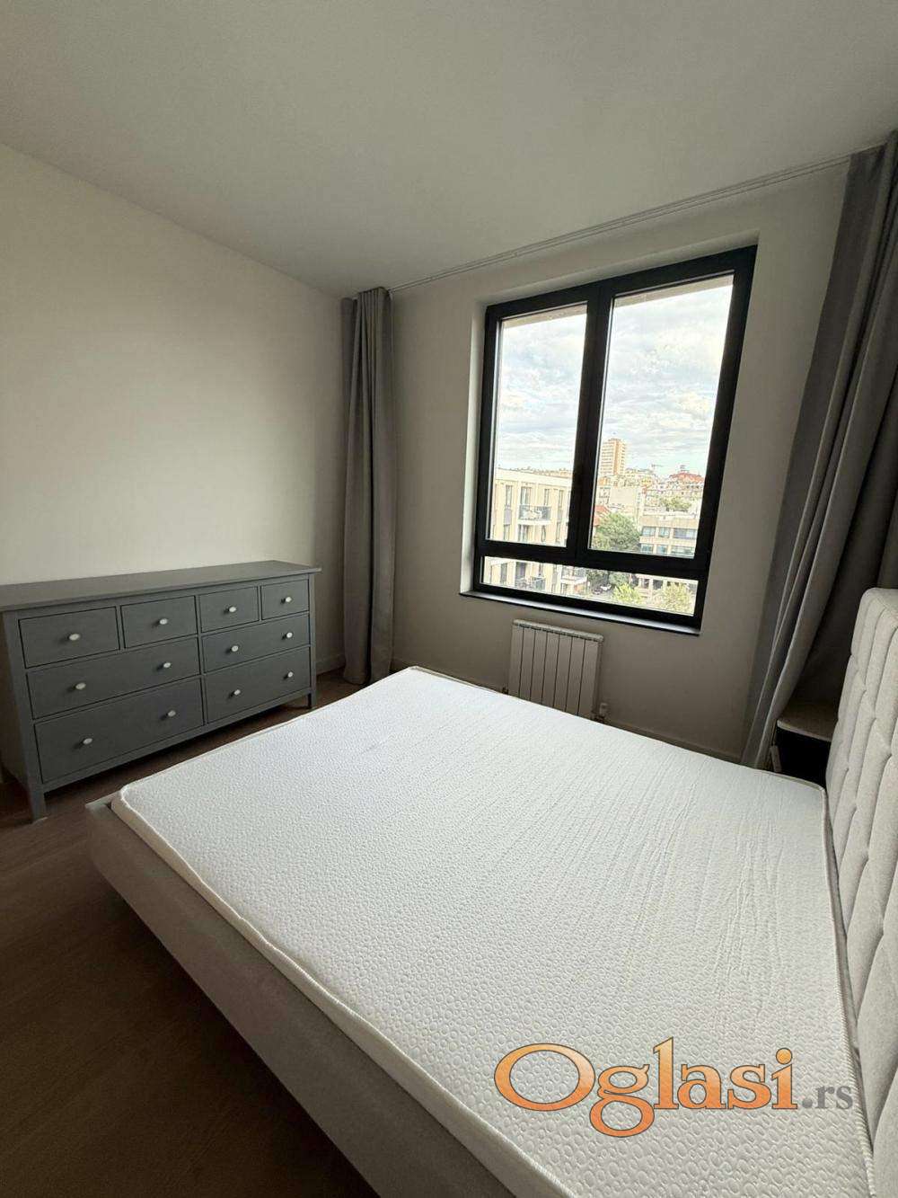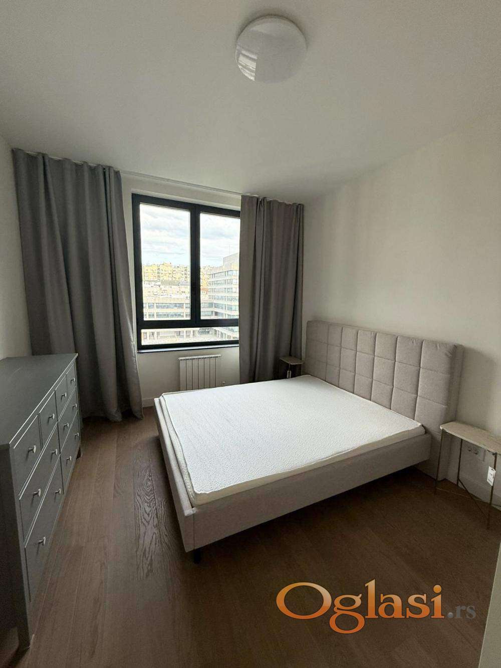 Izdaje se dvosoban stan od 57 m² u zgradi Quartet 1, na šestom spratu, u okviru kompleksa Beograd na vodi. Stan je moderan, potpuno opremljen i funkcionalno organizovan, sa svetlim dnevnim boravkom i prijatnom spavaćom sobom. Opremljen je savremenim uređajima među kojima su mašina za pranje i sušenje veša, kao i mašina za sudove, što boravak čini udobnim i praktičnim. U cenu zakupa uključeno je i garažno mesto. Zakupnina iznosi 1200 evra mesečno.