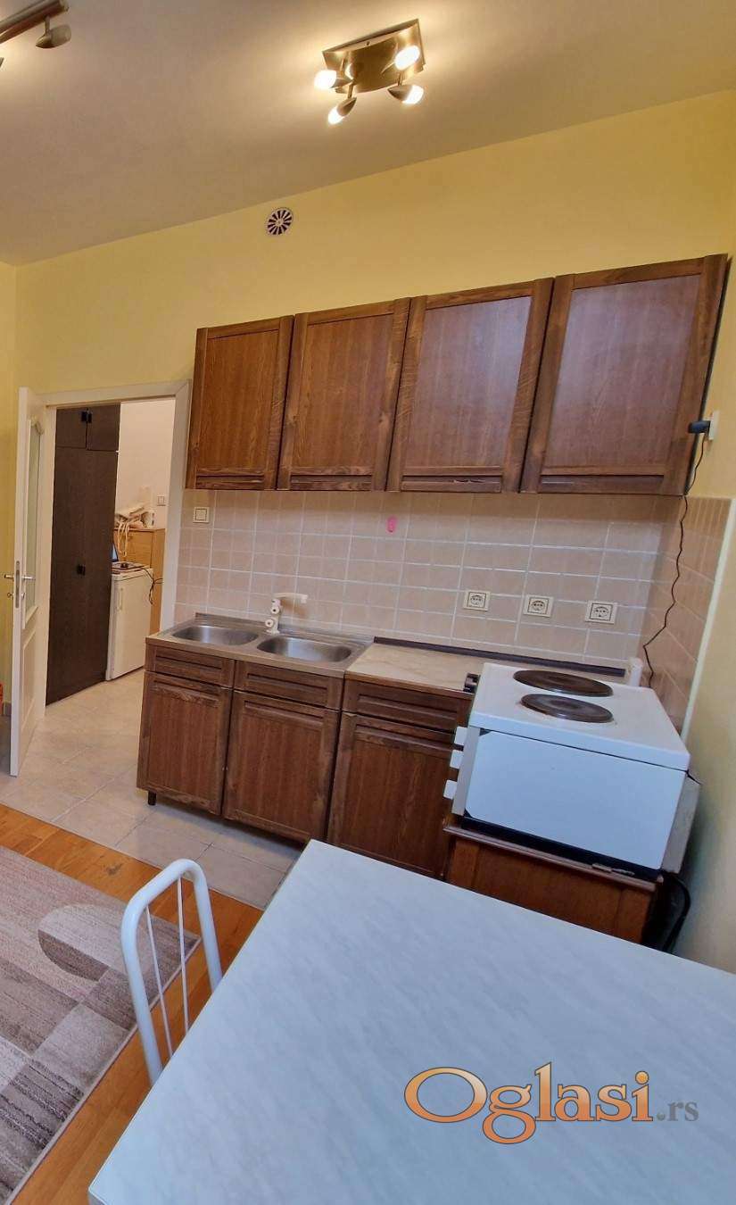 Izdaje se manja nameštena garsonjera, u niskoj zgradi u centru, na duži period.