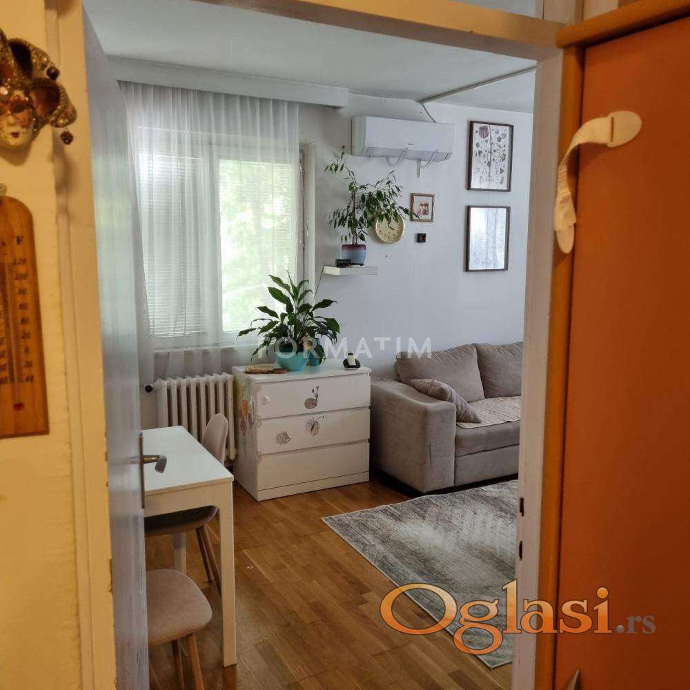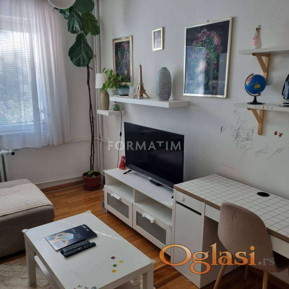 Kanarevo brdo, Borska Street. Tidy, furnished two-room apartment, 41m² on the first floor. The apartment is very bright, oriented on two sides, in a quiet area surrounded by greenery, in a park. Central heating, air conditioning, terrace. In the immediate vicinity are kindergartens, markets, bus stops. Payment is monthly, with a mandatory deposit in the amount of one rent. Available immediately.