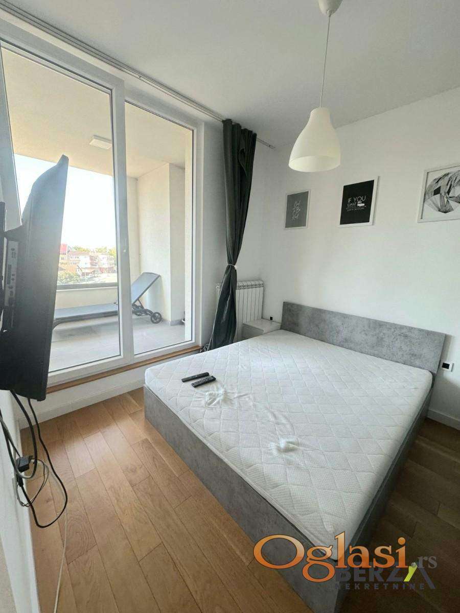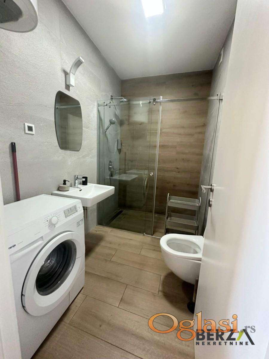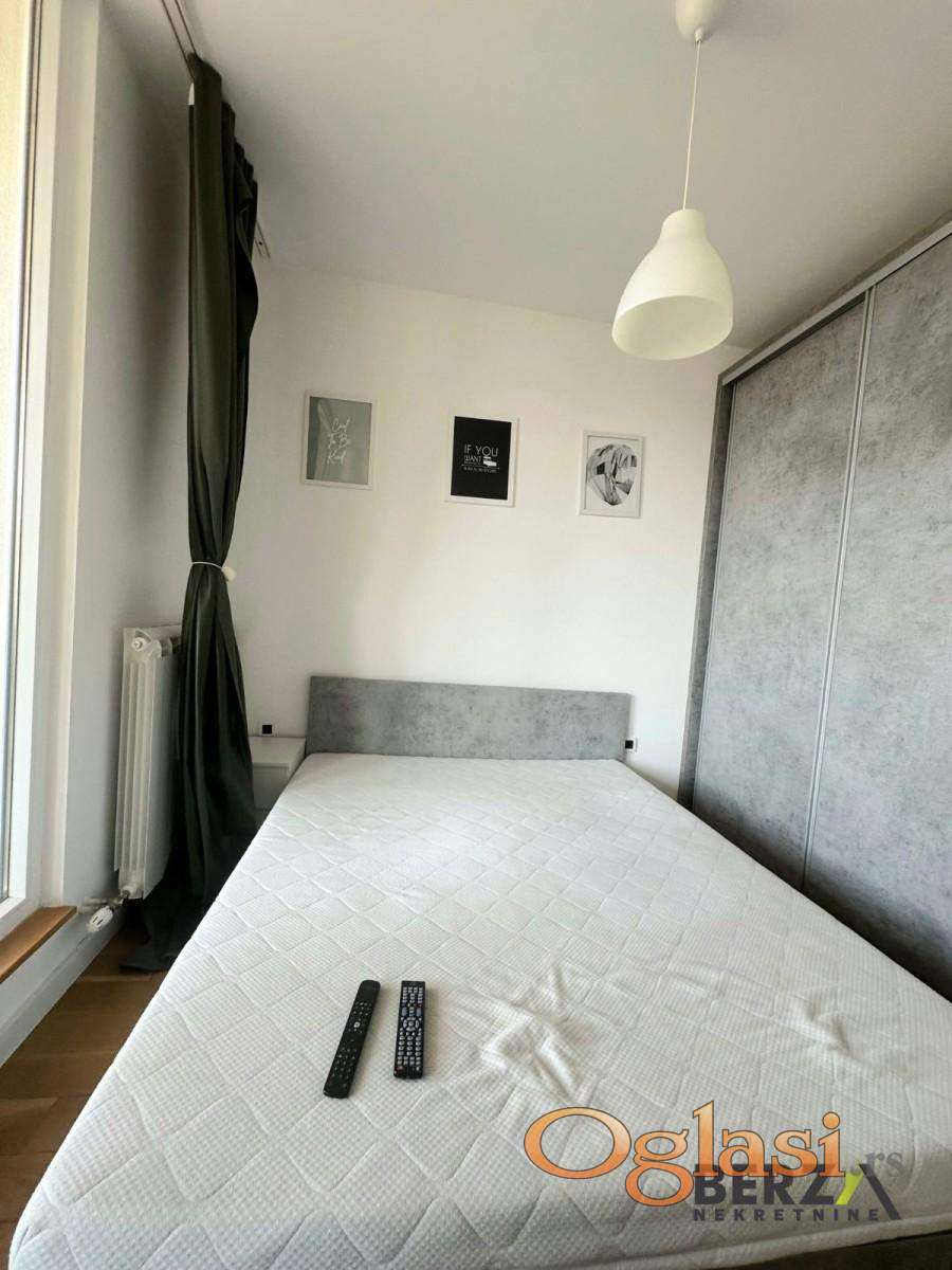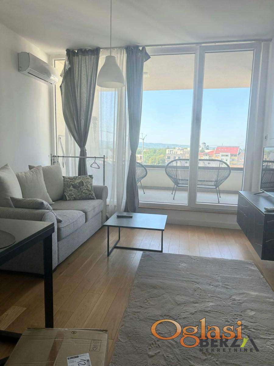 Agencijska šifra: 9111221. Prelep, kompletno opremljen dvosoban stan površine 41m2, koji se nalazi na 4. spratu luksuzne stambene zgrade locirane na samom početku Bulevara patrijarha Pavla. Stan se sastoji od dnevnog boravka u čijem je sklopu kuhinja, odvojene spavaće sobe, kupatila i idealne terase sa otvorenim pogledom. Stan je odmah useljiv. Potreban depozit u visini mesečne zakupnine. Agencijska provizija iznosi 50% od vrednosti prve mesečne zakupnine i plaća se jednokratno. Za više informacija pozovite na: 060/080-55-50. Berza nekretnine, Novi Sad, reg broj posrednika 1020