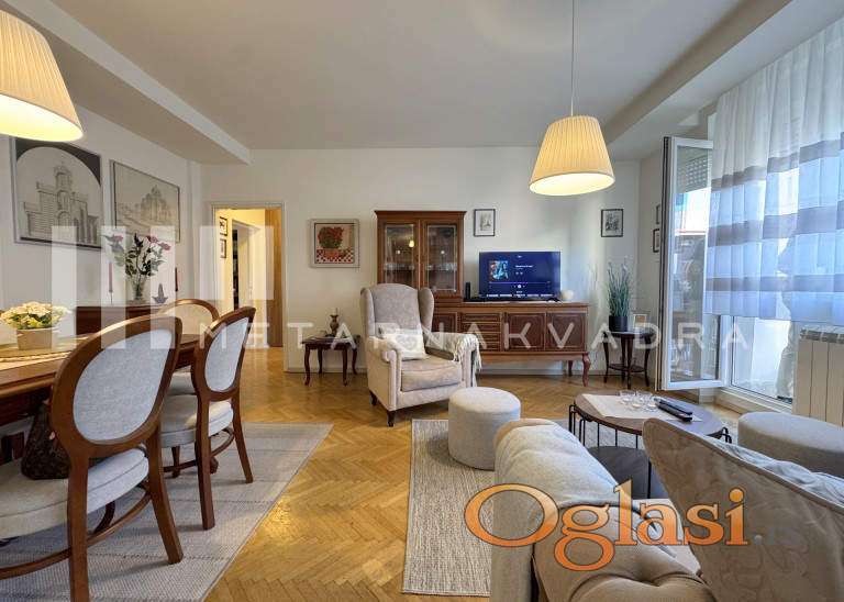 Izdaje se lepo sređen, kompletno namešten trosoban stan na jednoj od najtraženijih lokacija u Beogradu – u neposrednoj blizini Tašmajdanskog parka. Stan je svetao, prostran i funkcionalan, sastoji se od dnevnog boravka sa trpezarijom, dve spavaće sobe, kompletno opremljene kuhinje i kupatila. U potpunosti je namešten modernim i kvalitetnim nameštajem, odmah useljiv i pogodan za udoban porodični i poslovan život. Prednosti: odlična lokacija kod Tašmajdanskog parka, kompletno opremljen stan, bez dodatnih ulaganja, blizina gradskog prevoza, škola, fakulteta i svih sadržaja centra grada. Za više informacija i zakazivanje gledanja, pozovite agenciju Metar na kvadrat. Agencijska provizija 50% prvog zakupa.