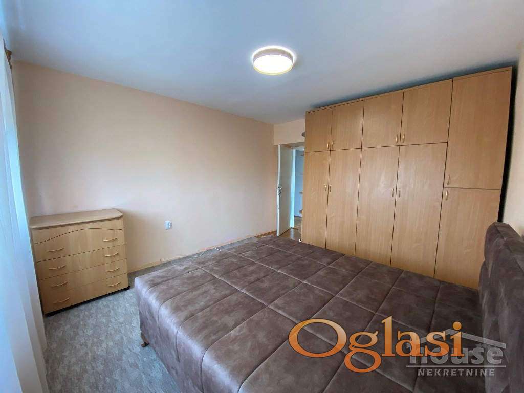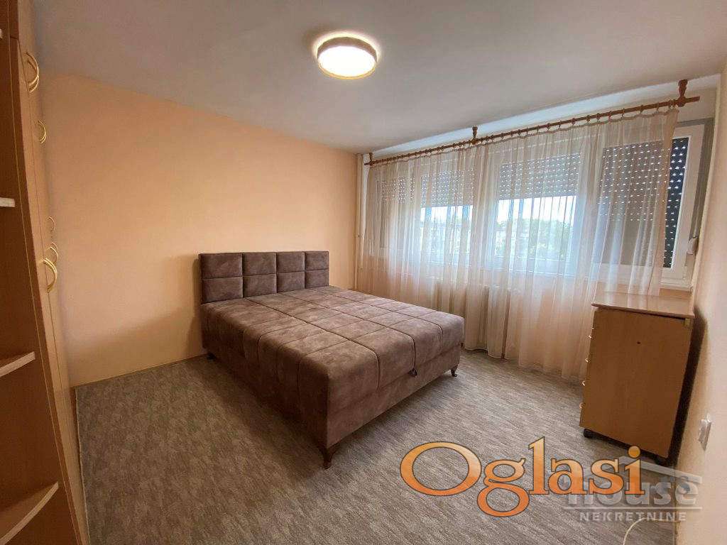 Nalazi se na 5.spratu solitera, ima 66m2, sastoji se iz predsoblja, kuhinje sa trpezarijom, dneven sobe, spavaće sobe, kupatila i terase. U dnevnoj sobi je ugaona garnitura a u spavaćoj bračni kreevt. Stan je kompletno je opremljen belom tehnikom, klimatizovan i odmah useljiv.