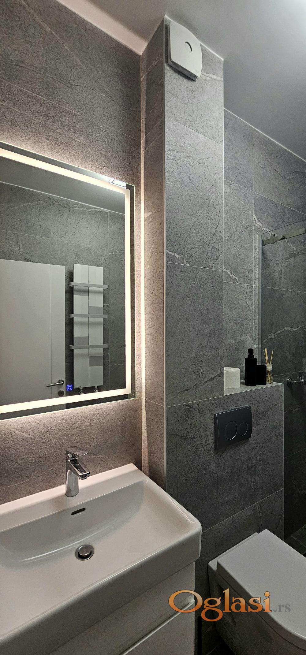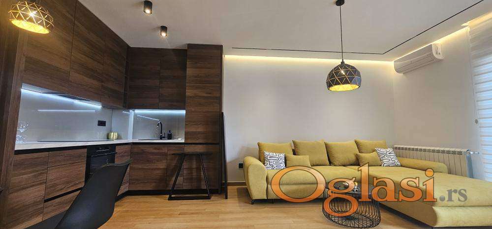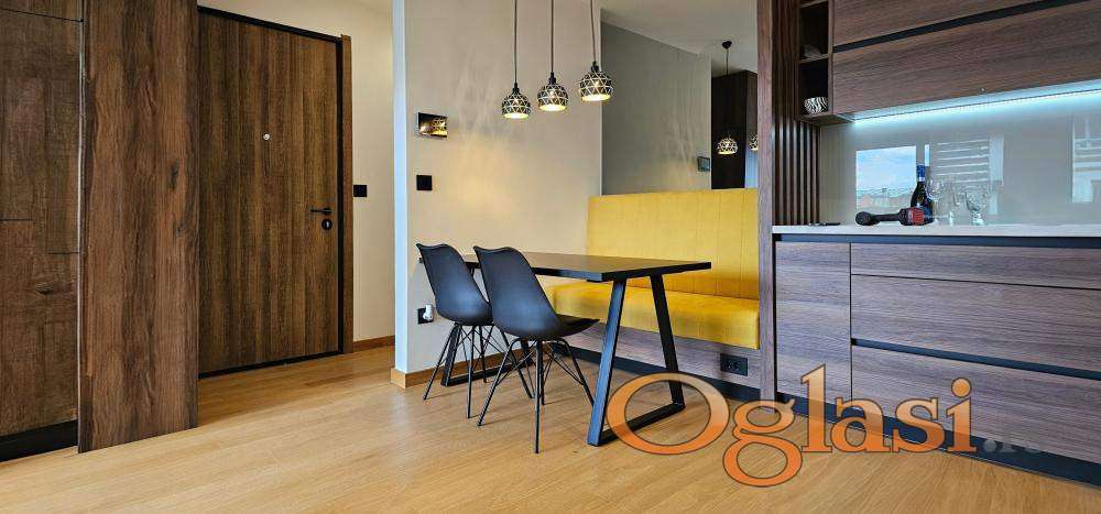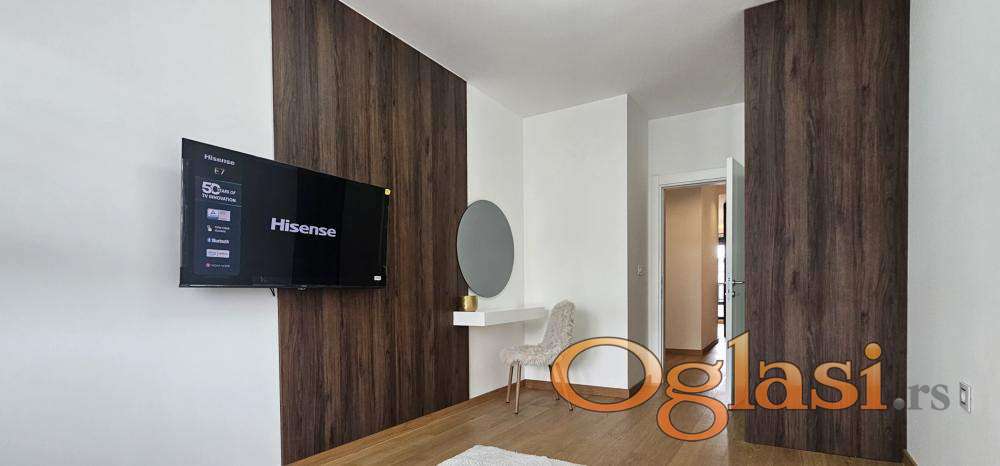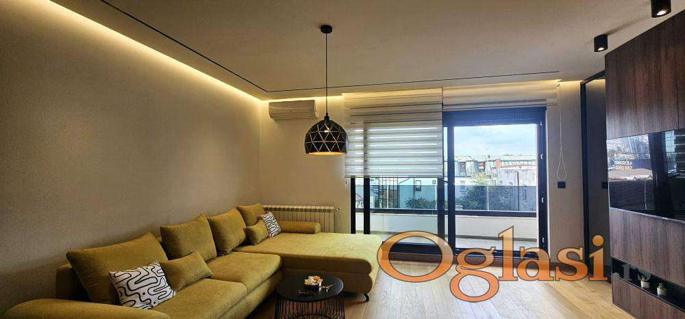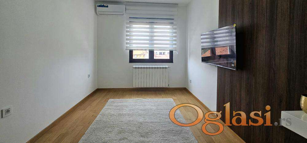 U potpunosti je luksuzno namešten i opremljen, spreman za useljenje. Uz stan je moguće zakupiti i garažno mesto uz doplatu od 100€.