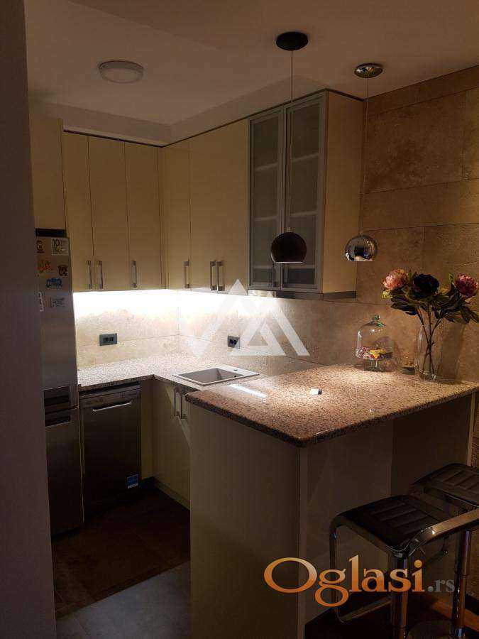 Garsonjera u novoj zgradi, vrhunski opremljena i kompletno nameštena.