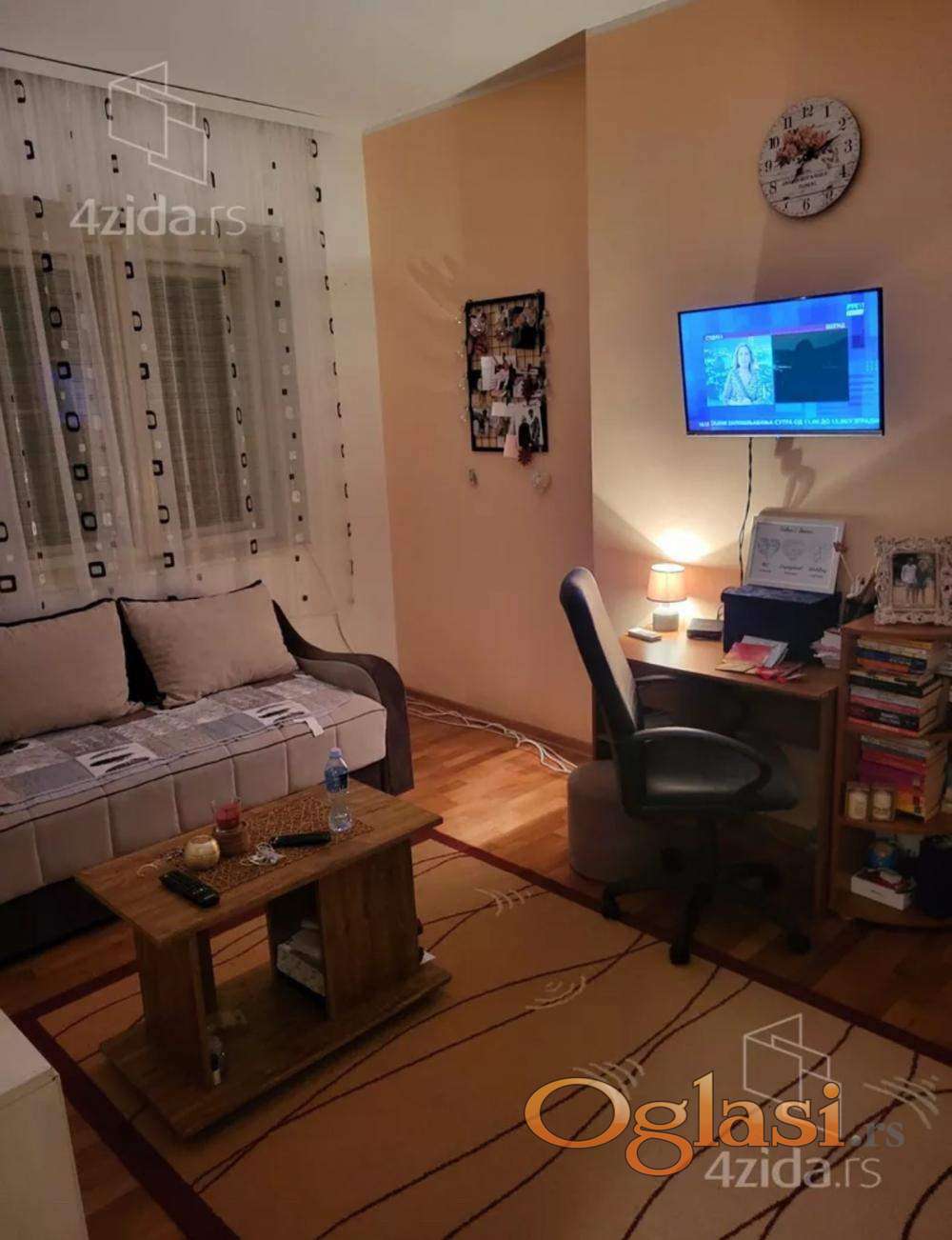 Kompletno namesten stan. Upravo zamenjeni prozori, roletne, okrečen. Grejanje-norveski radijatori,mala cena info stana. Poseduje novu masinu za sušenje veša. Nisu dozvoljeni kućni ljubimci. Odmah useljivo.