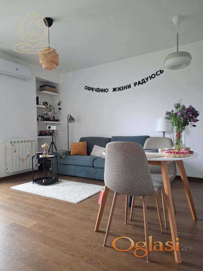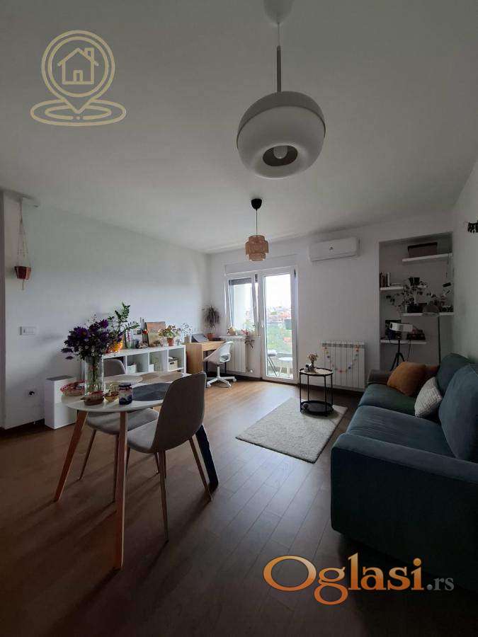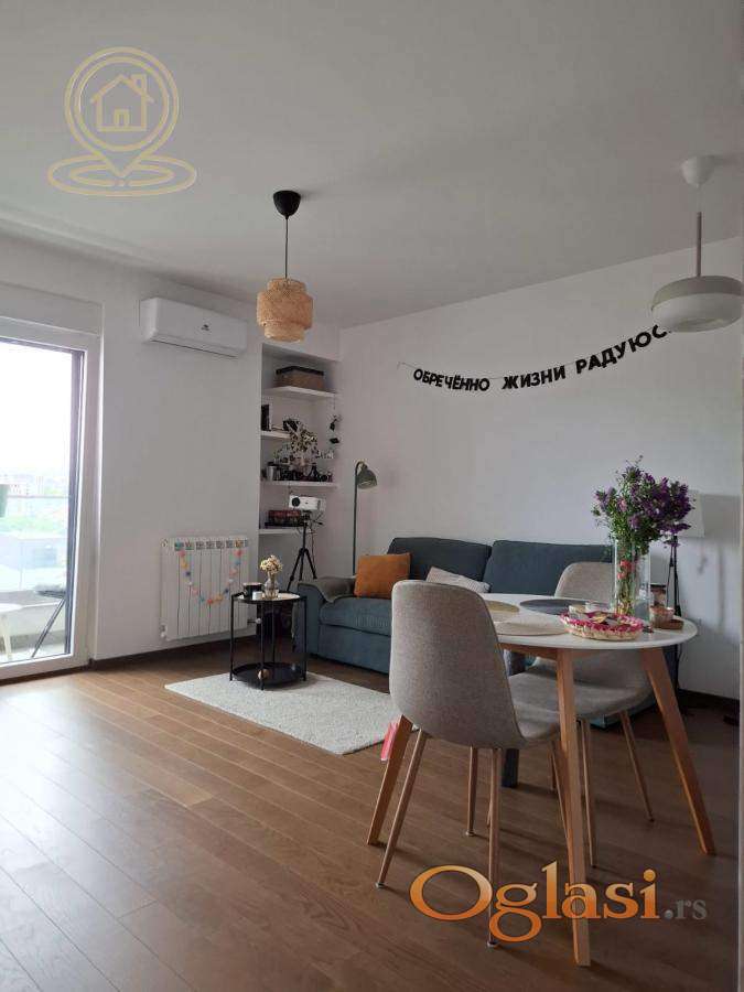 Sastoji se od prostrane dnevne sobe sa kuhinjom i trpezarijom, odvojene spavaće sobe, kupatila i terase. Sve u stanu je novo, moderno i nekorišćeno, što pruža savršen komfor za stanovanje.