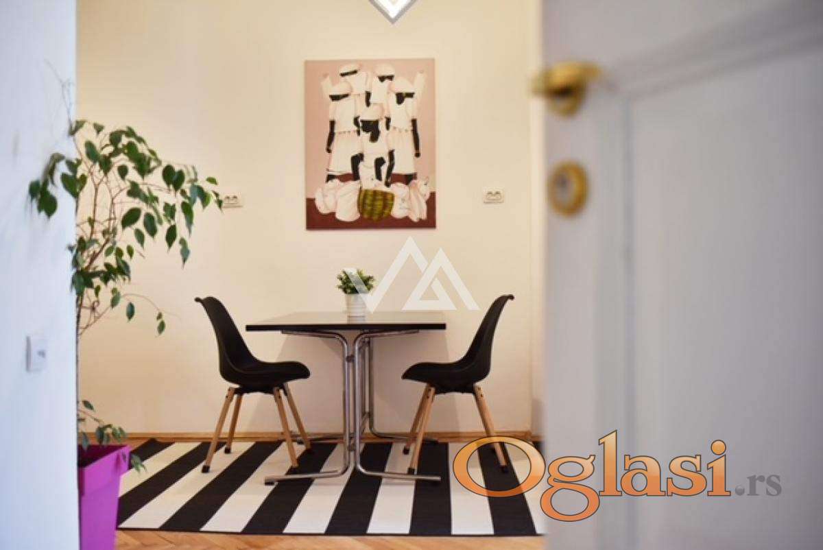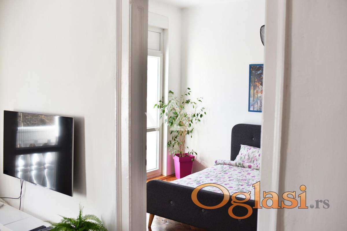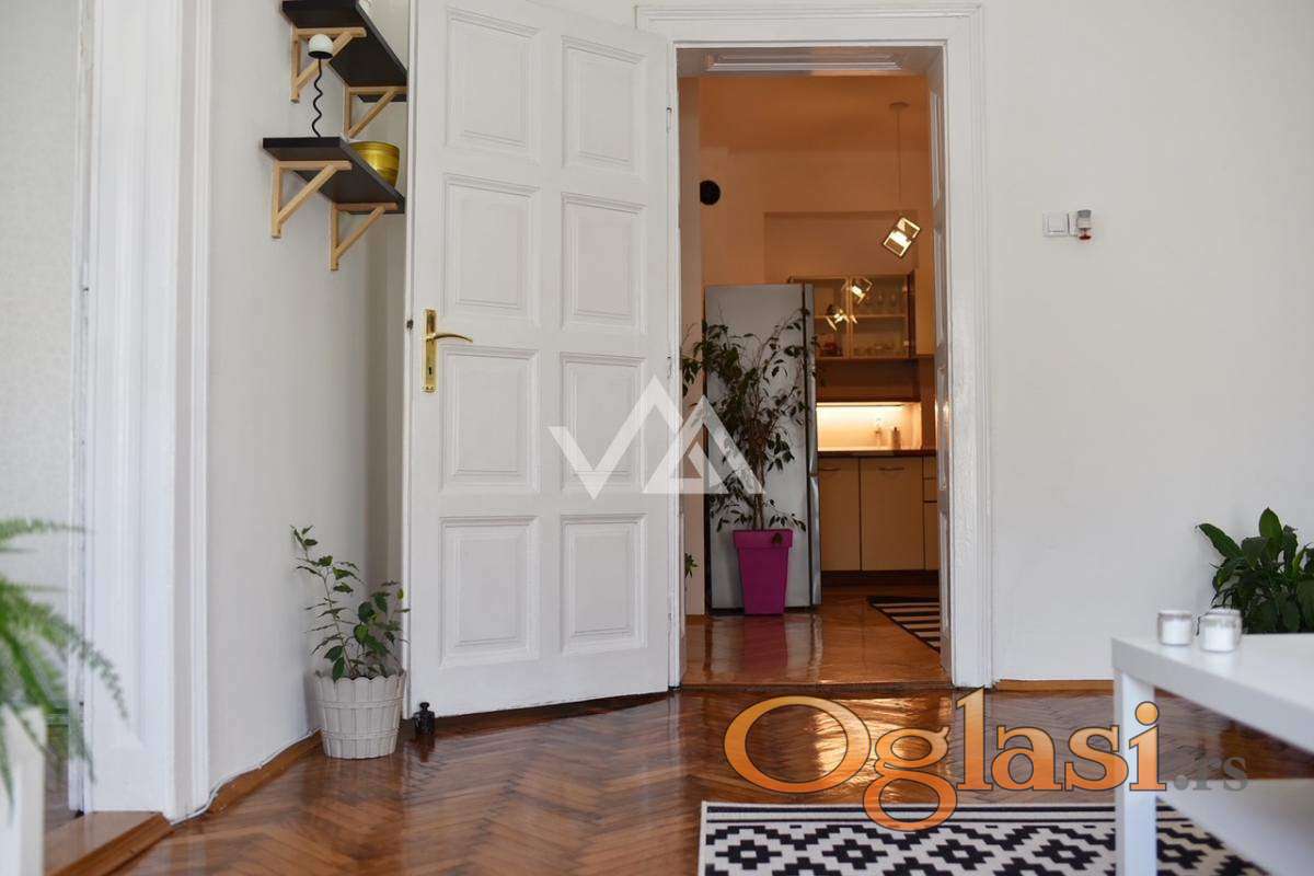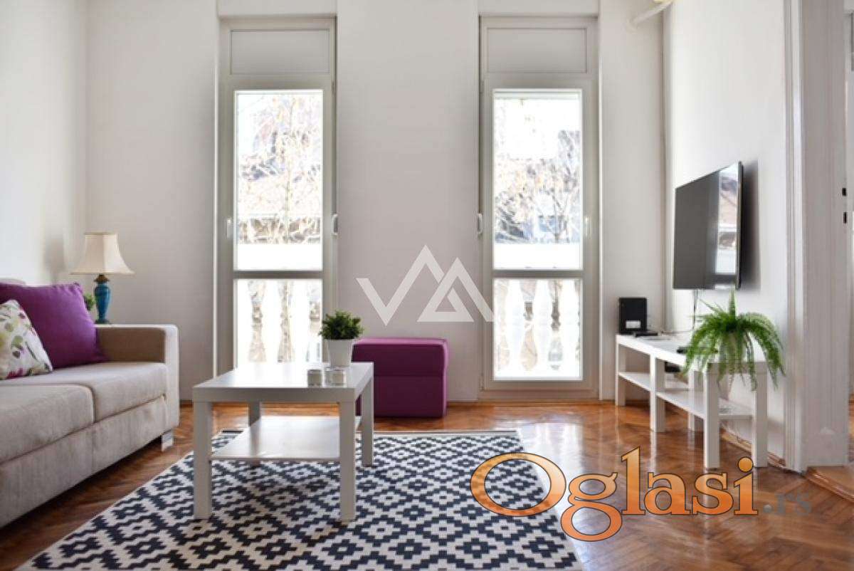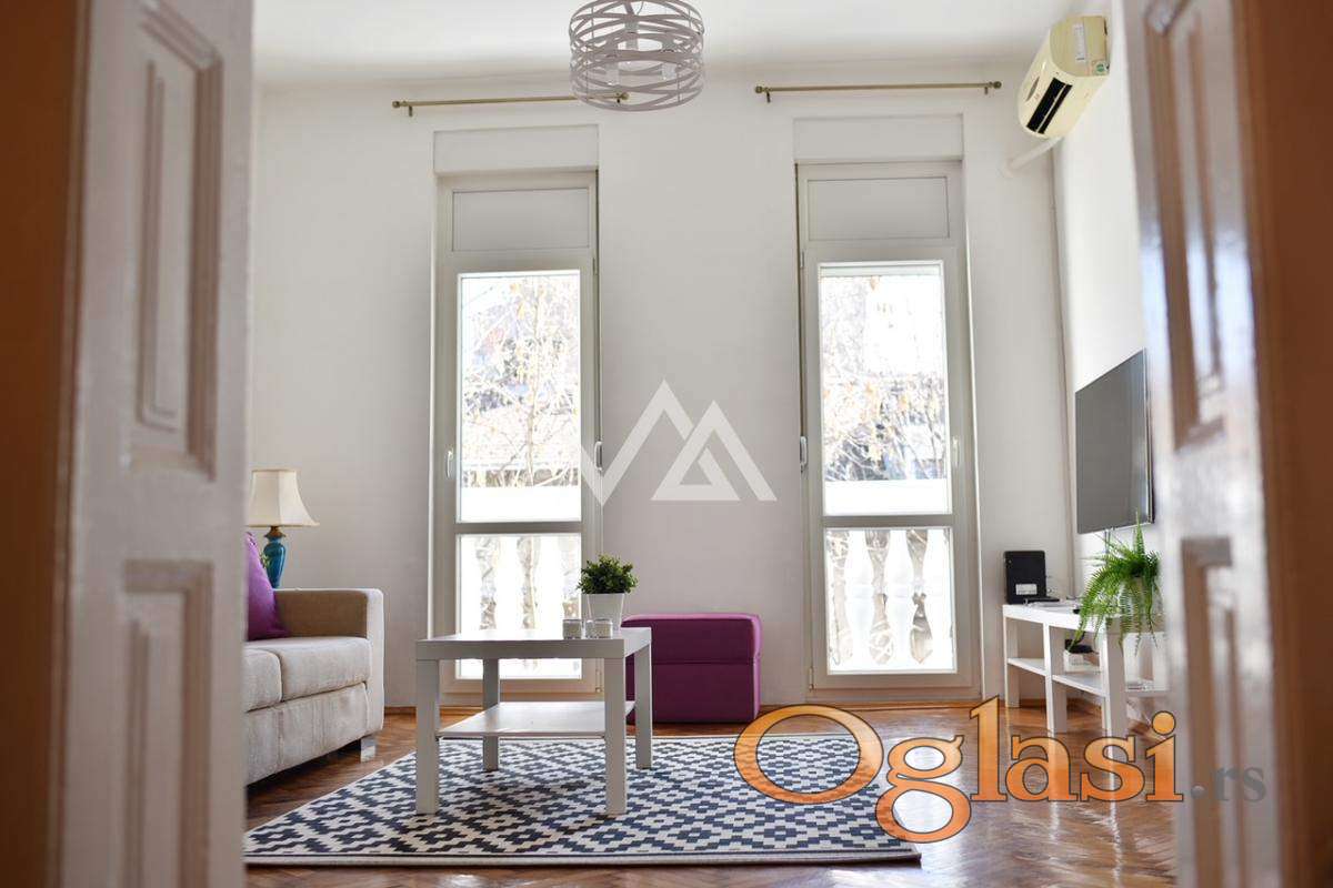 Izdaje se svetao dvosoban salonski stan (50m²) u strogom centru grada – Dositejeva ulica, Dorćol.