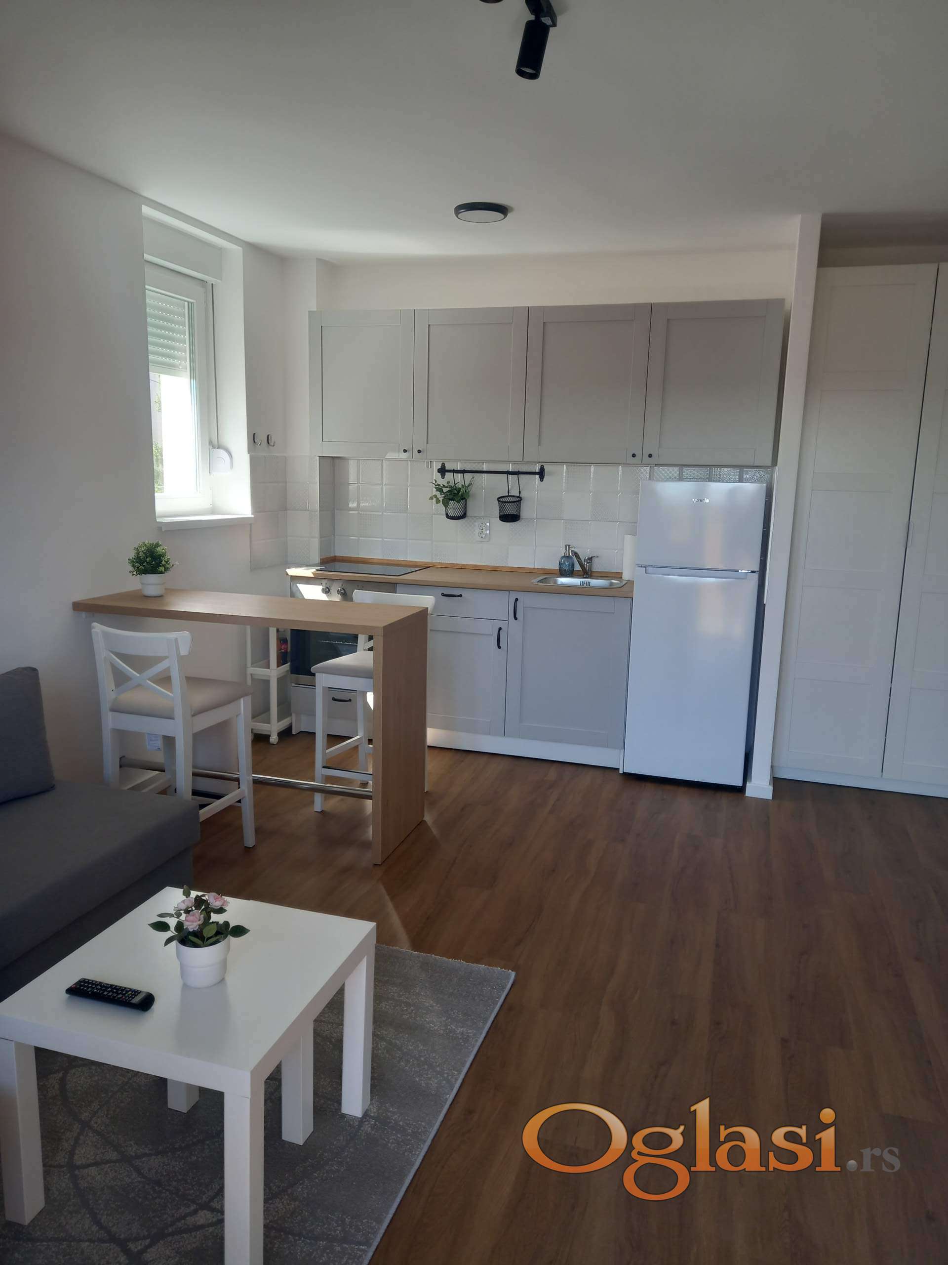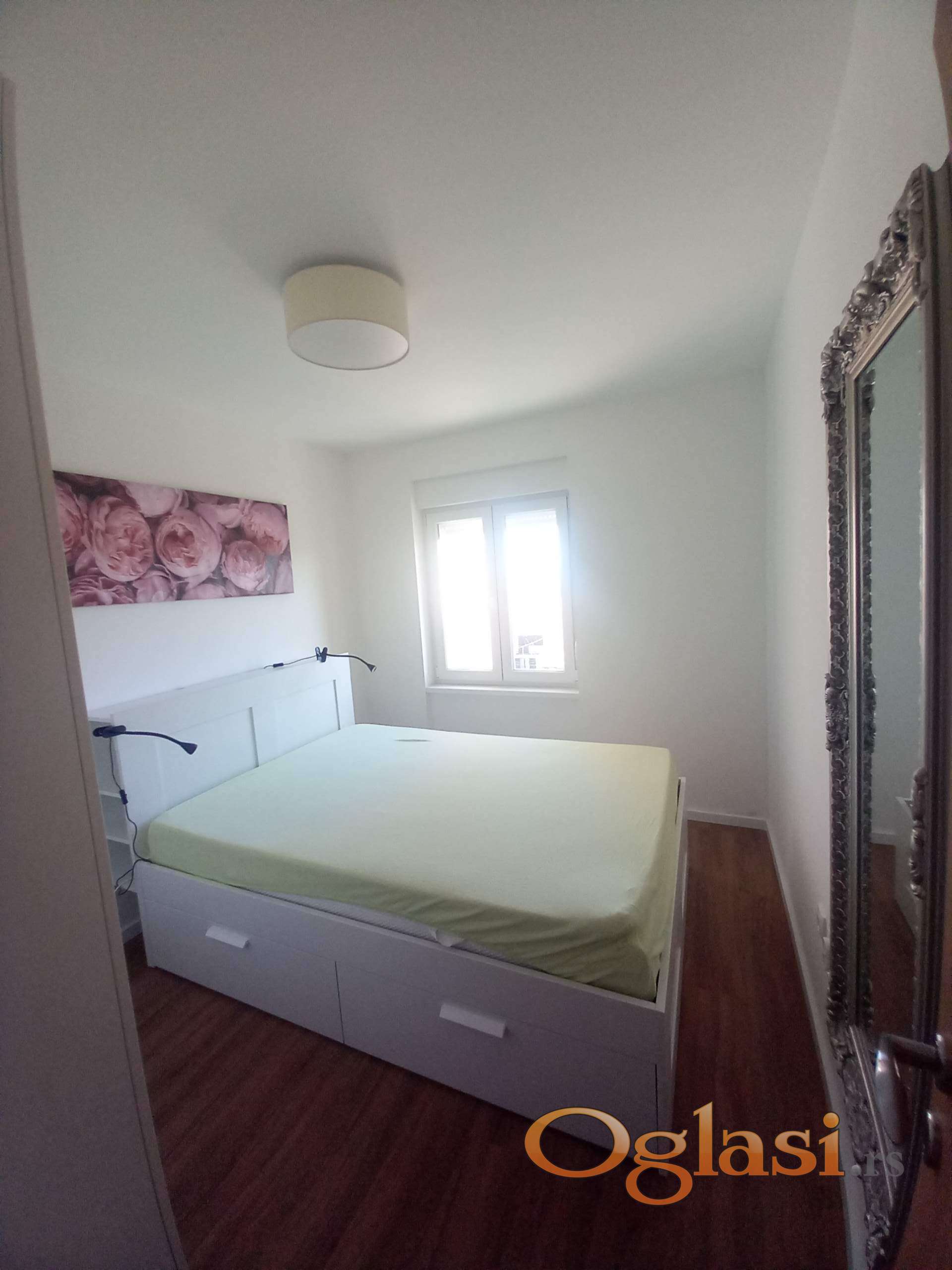 Uredan i svetao stan sa terasom, dvorišno orijentisan. Opremljen NOVIM NAMEŠTAJEM I NOVOM BELOM TEHNIKOM U KUHINJI. Stan je komplet opremljen IKEA nameštajem i ostalim sitnim pokućstvom.