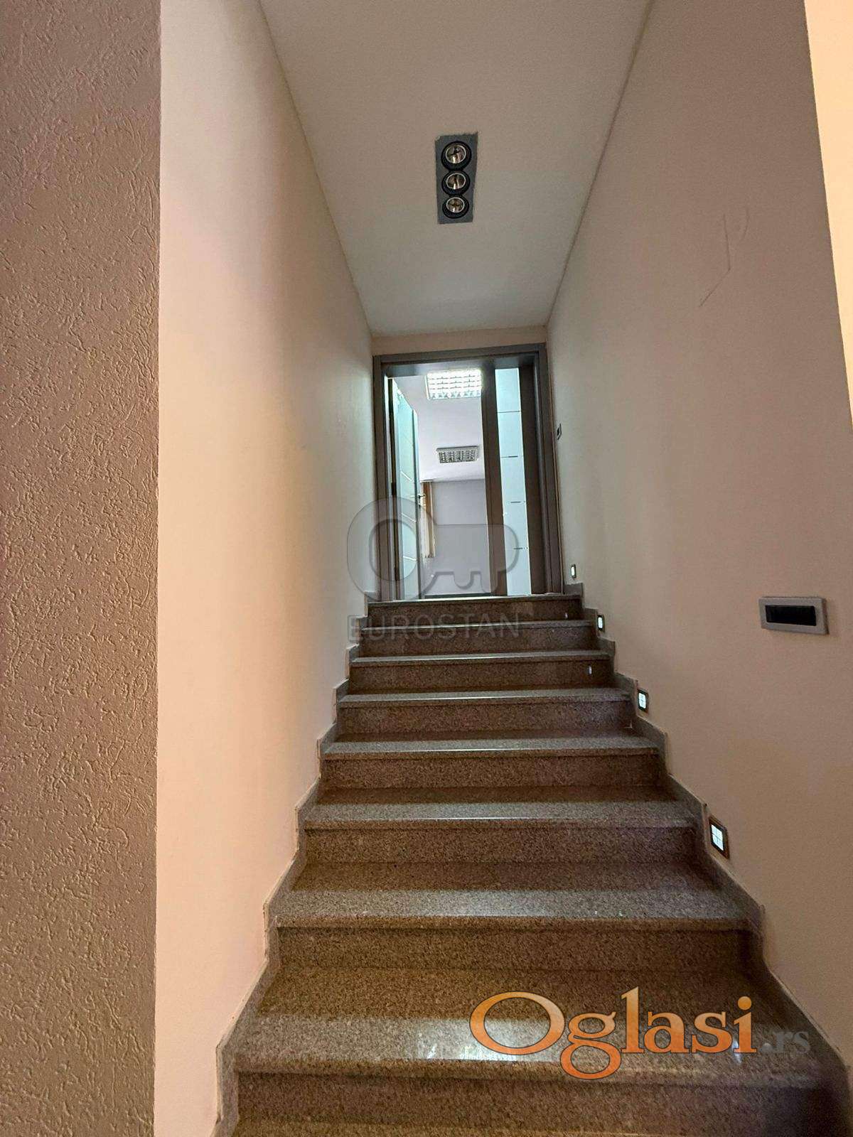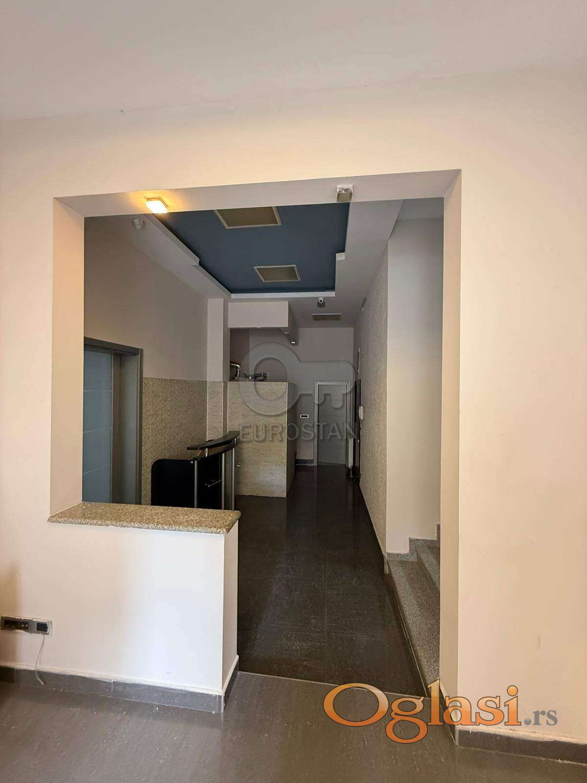Na prvoj etaži se nalazi prijemna kancelarija sa recepcijom, glavna kancelarija, kuhinja, kupatilo. Na drugoj etaži se nalaze tri kancelarije pravilnog oblika i kupatilo.