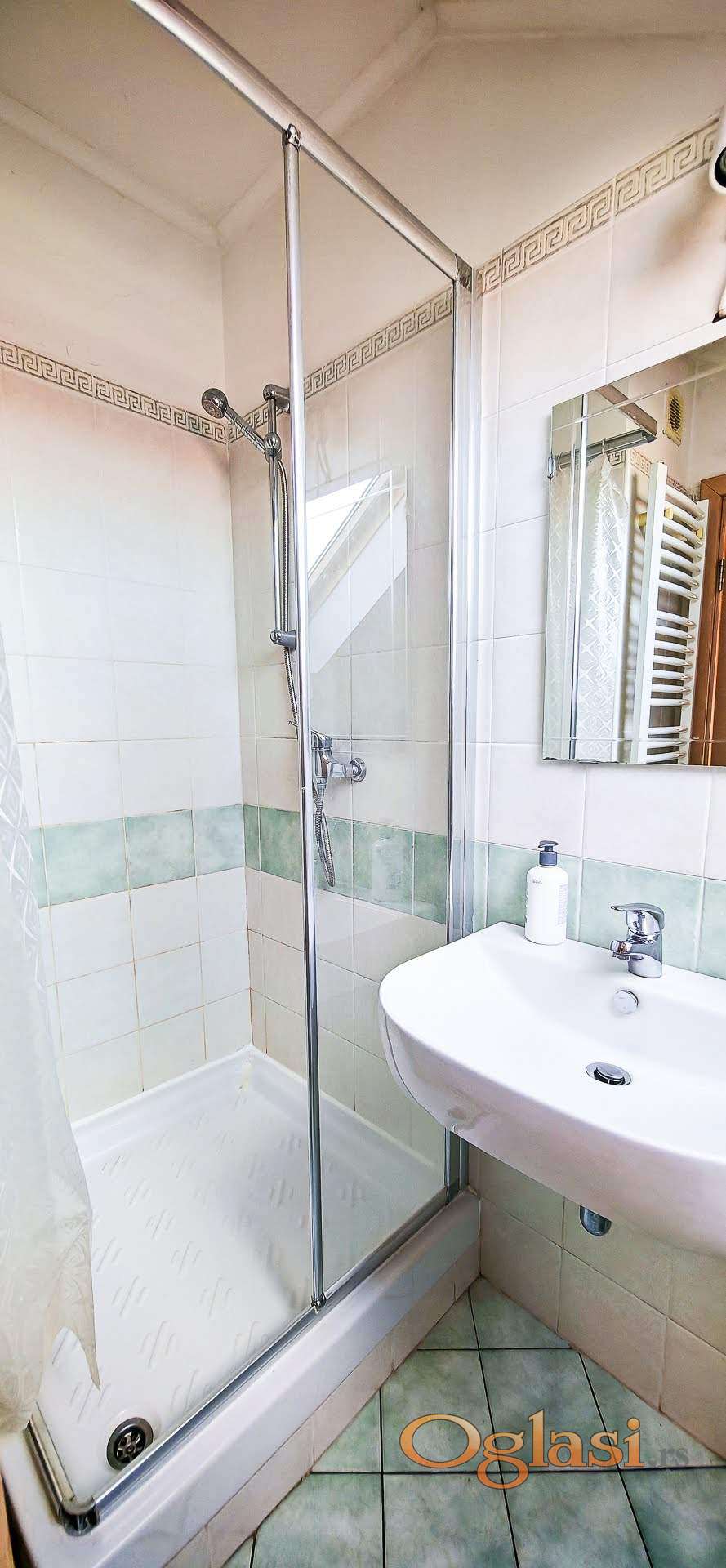 Izuzetno lep stan,kompletno opremljen sa prelepim pogledom na Frušku goru,sa 2 velike lepe terase,idealno za porodicu,za ljude koji rade od kuće.Lep raspored na donjem delu su hodnik,dnevni boravak,kuhinja,kupatilo,velika terasa,a na gornjem delu su hodnik,3 sobe,kupatilo,terasa,stan je mouće iznajmiti na kraći ili na duži period,može i bez nameštaja,prilagodljivo za potrebe budućih zakupaca,useljiv od 02.novembra,dozvoljeni su kućni ljubimci,cena 800 e+depozit+ag.provizija.