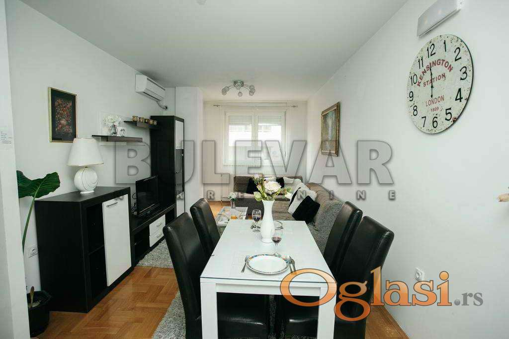 Izdaje se stan u samom centru. Stan se sastoji od ulaznog hodnika, dve spavaće sobe, dnevne sobe sa kuhinjom i trpezarijom, kupatila, posebog wc-a i terase. Ukupna površina stana je 64m2 i nalazi se na I spratu u zgradi koja poseduje lift. Stan je opremljen nameštajem i svom potrebnom tehnikom.