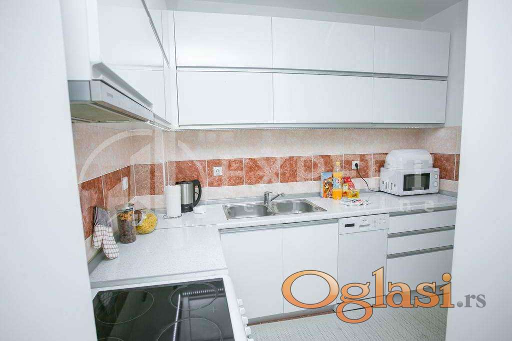 Izdaje se stan u samom centru. Stan se sastoji od ulaznog hodnika, dve spavaće sobe, dnevne sobe sa kuhinjom i trpezarijom, kupatila, posebog wc-a i terase. Ukupna površina stana je 64m2 i nalazi se na I spratu u zgradi koja poseduje lift. Stan je opremljen nameštajem i svom potrebnom tehnikom.
