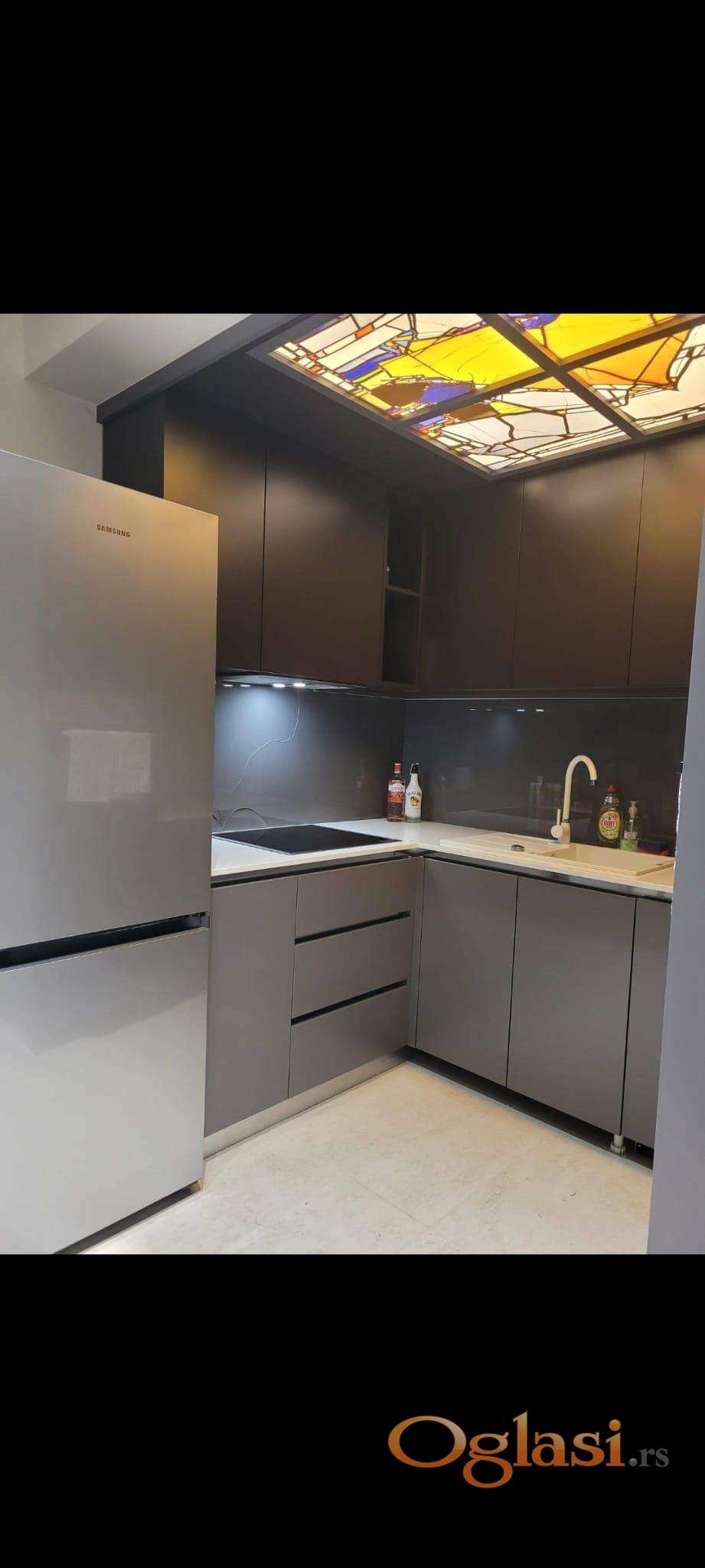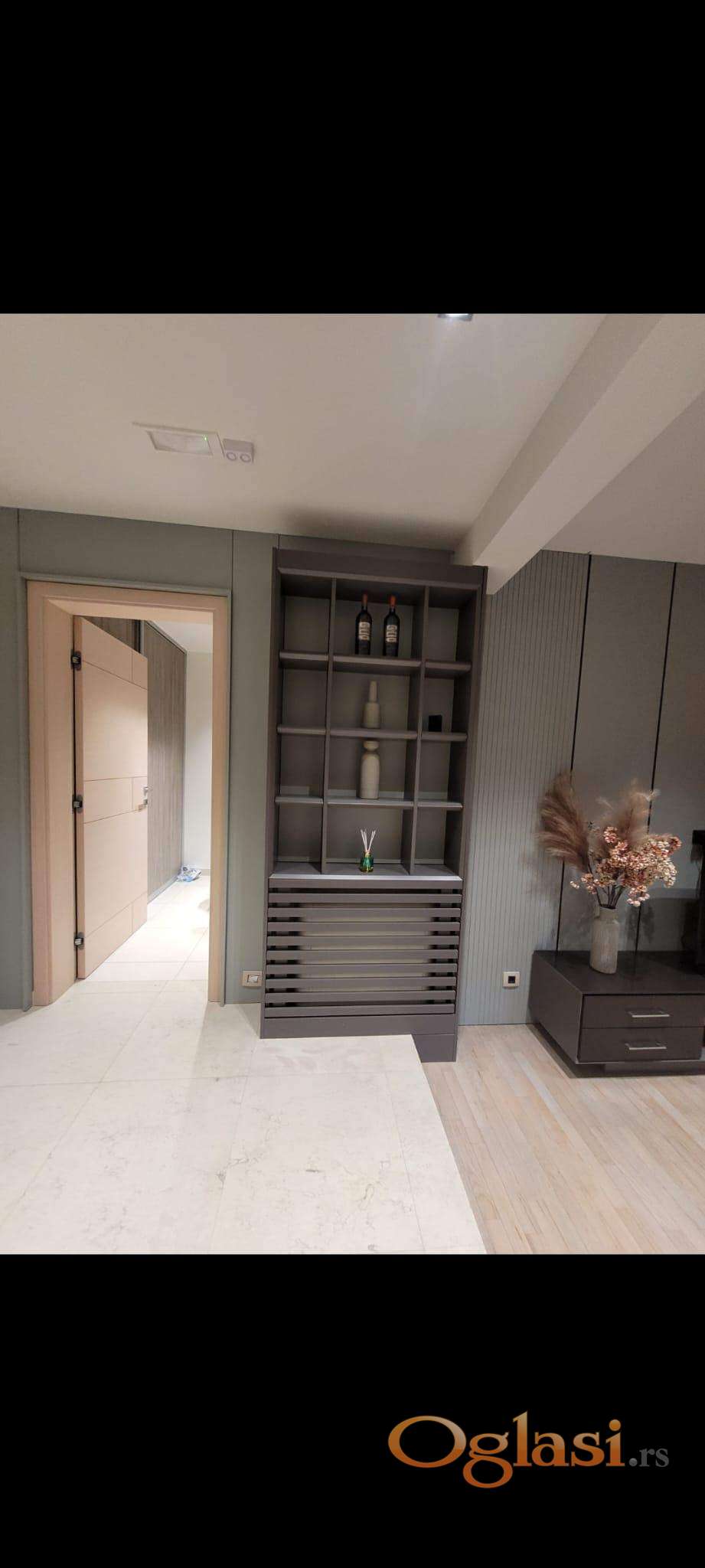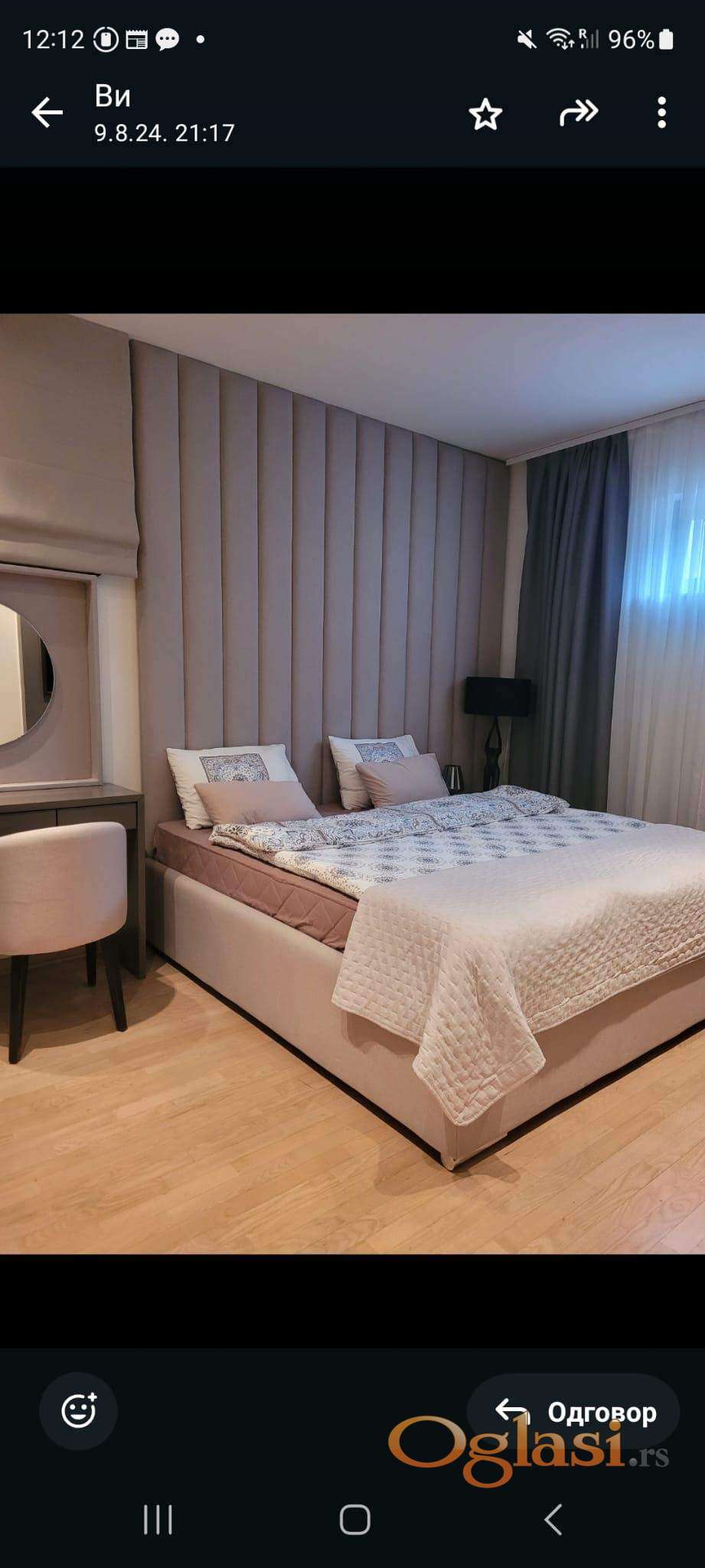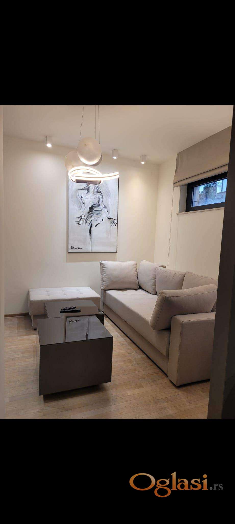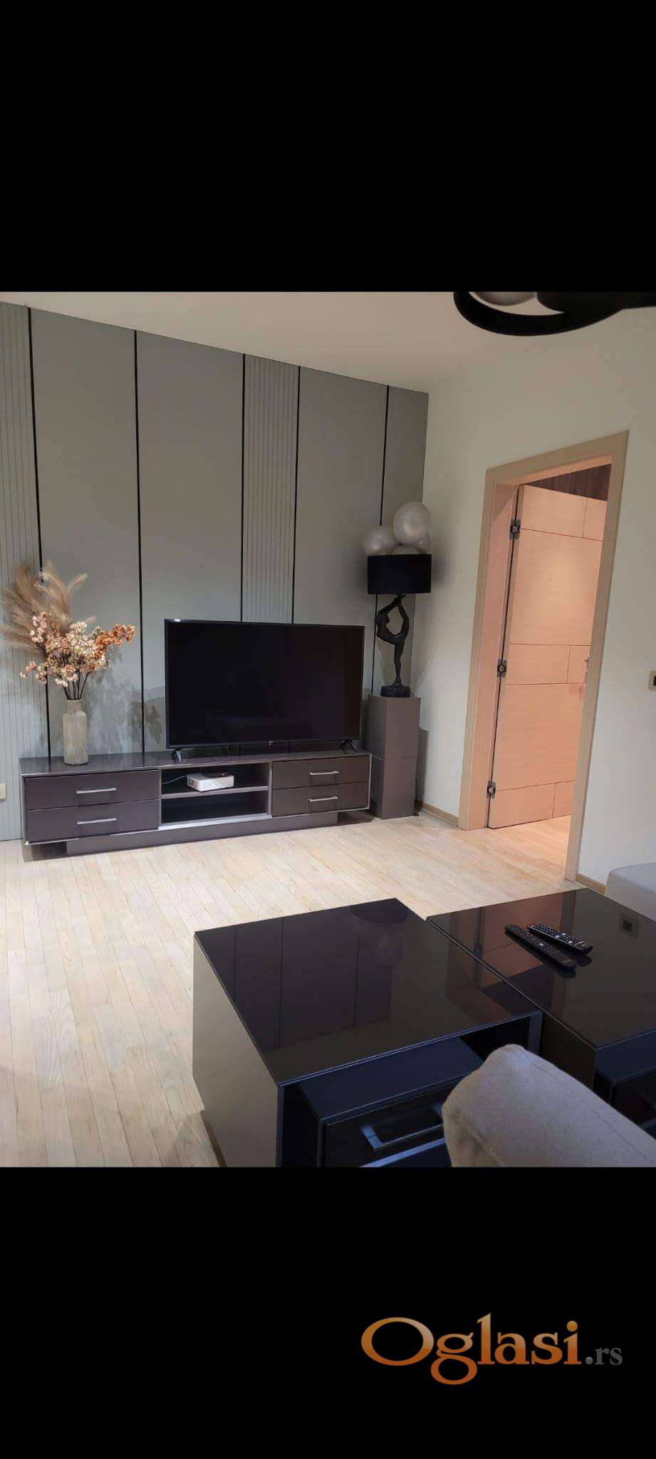 Izdaje se kompletno opremljen stan sa garažom i obezbeđenjem 24h. Novogradnja iz 2015.god.Centralna klima,optički internet.Useljiv.
