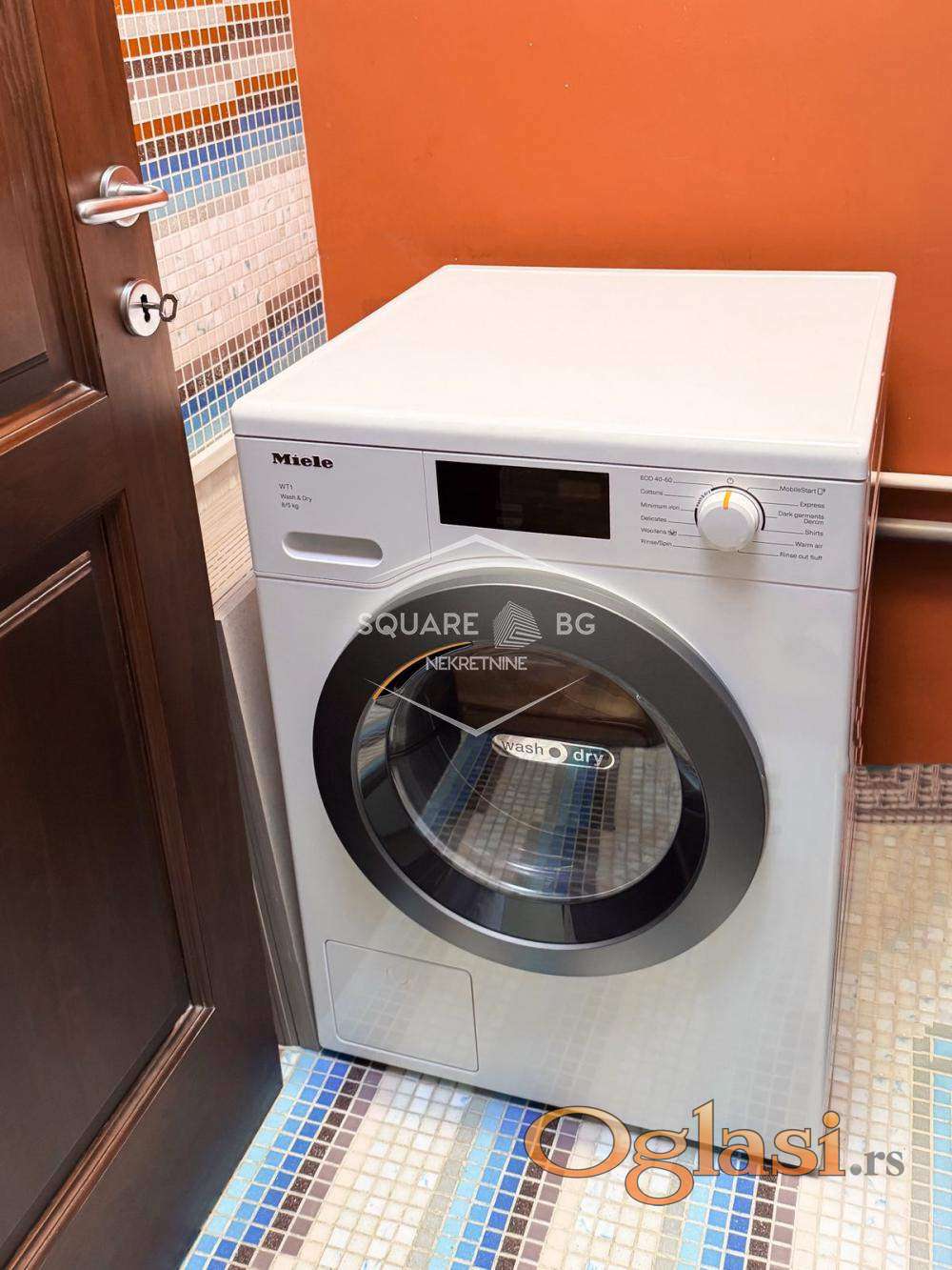 It is fully furnished and equipped with top-quality appliances: Miele kitchen appliances, Miele washing machine and dryer, dishwasher, robot vacuum cleaner, two Sony Bravia TVs, inverter air conditioner, steam station, complete dishes and accessories, LED lighting.