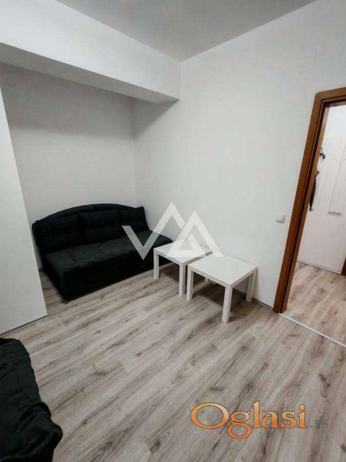 Karaburma , ulica Patrisa Lumumbe, 27 m2, jednosoban stan na četvrtom spratu bez lifta . Sastoji se od hodnika, kupatila , sobe , fizički odvojene kuhinje sa trpezarijom i zastakljene lođe . tek renoviran .Klima inverter , katv, net. Useljiv odmah..