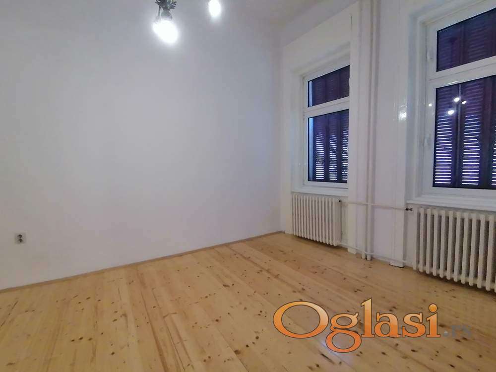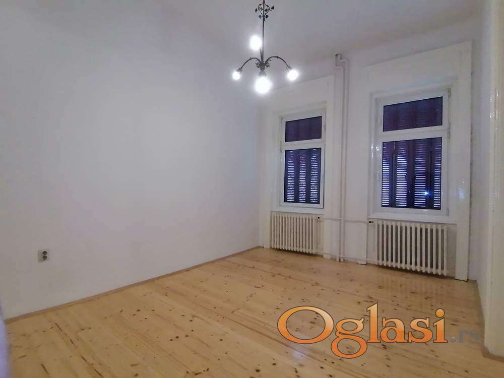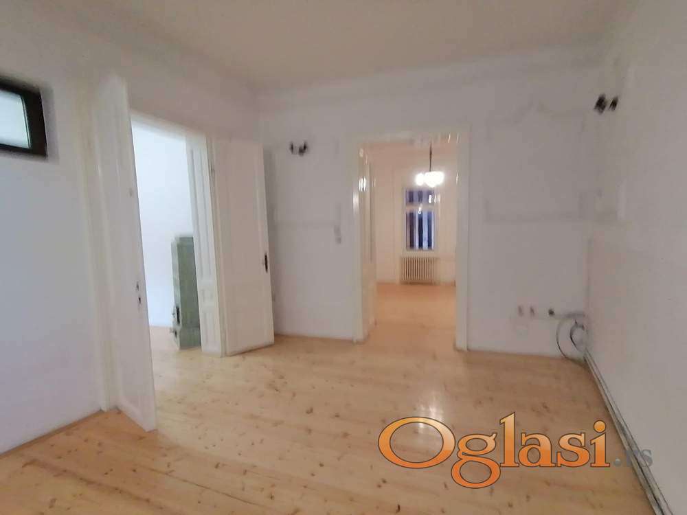Na gornjoj etaži su tri sobe i sanitarni čvor. Nema terase ni kolski ulaz. U strogom centru grada je. Useljiv je odmah.