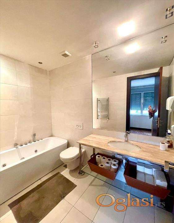 Izdaje se prelep, moderno i kvalitetno opremljen stan u luksuznoj novogradnji, površine 130 m². Stan se sastoji od prostranog dnevnog boravka u sklopu trpezarije, kompletno opremljene kuhinje, tri spavaće sobe, dva kupatila i posebnog toaleta, kao i terase koja pruža mir i komfor. Opremljen je vrhunskim nameštajem i tehnikom, sa pažljivo biranim detaljima i savršenim rasporedom prostorija. U cenu je uključeno i garažno mesto. Nalazi se u jednoj od najtraženijih lokacija u Beogradu – kod Hrama Svetog Save, u blizini svih potrebnih sadržaja, restorana i prodavnica. Stan se izdaje isključivo na duži vremenski period.