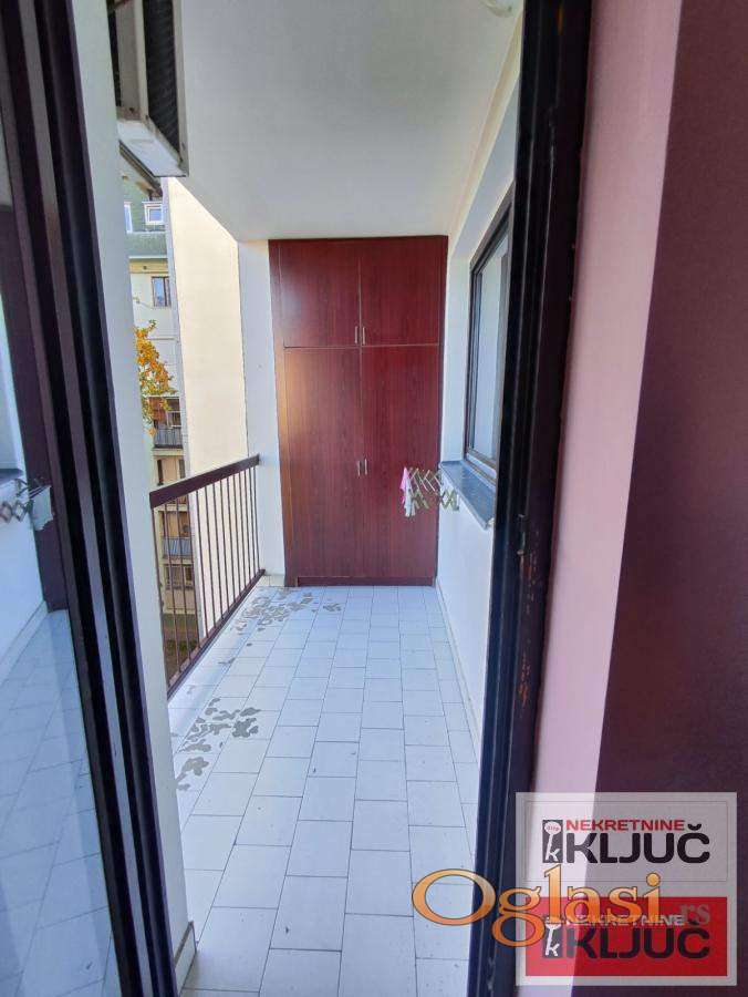 Na Bul.K.Petra izdajemo dvosoban namešten stan.Zgrada je uvučena u odnosu na bulevar-mirna ulica.Dnevni boravak sa kuhinjom i trpezarijom ,terasa,spavaća soba,kupatilo.