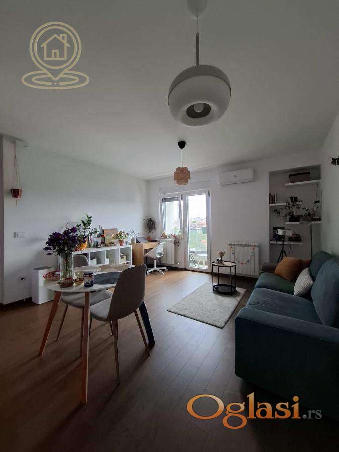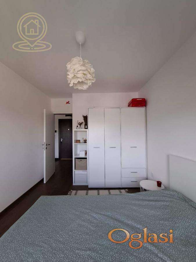 Sastoji se od svetlog dnevnog boravka sa kuhinjom i trpezarijom, spavaće sobe, kupatila i terase. Sve u stanu je novo i pažljivo odabrano, što pruža maksimalan komfor i prijatan ambijent za život.
