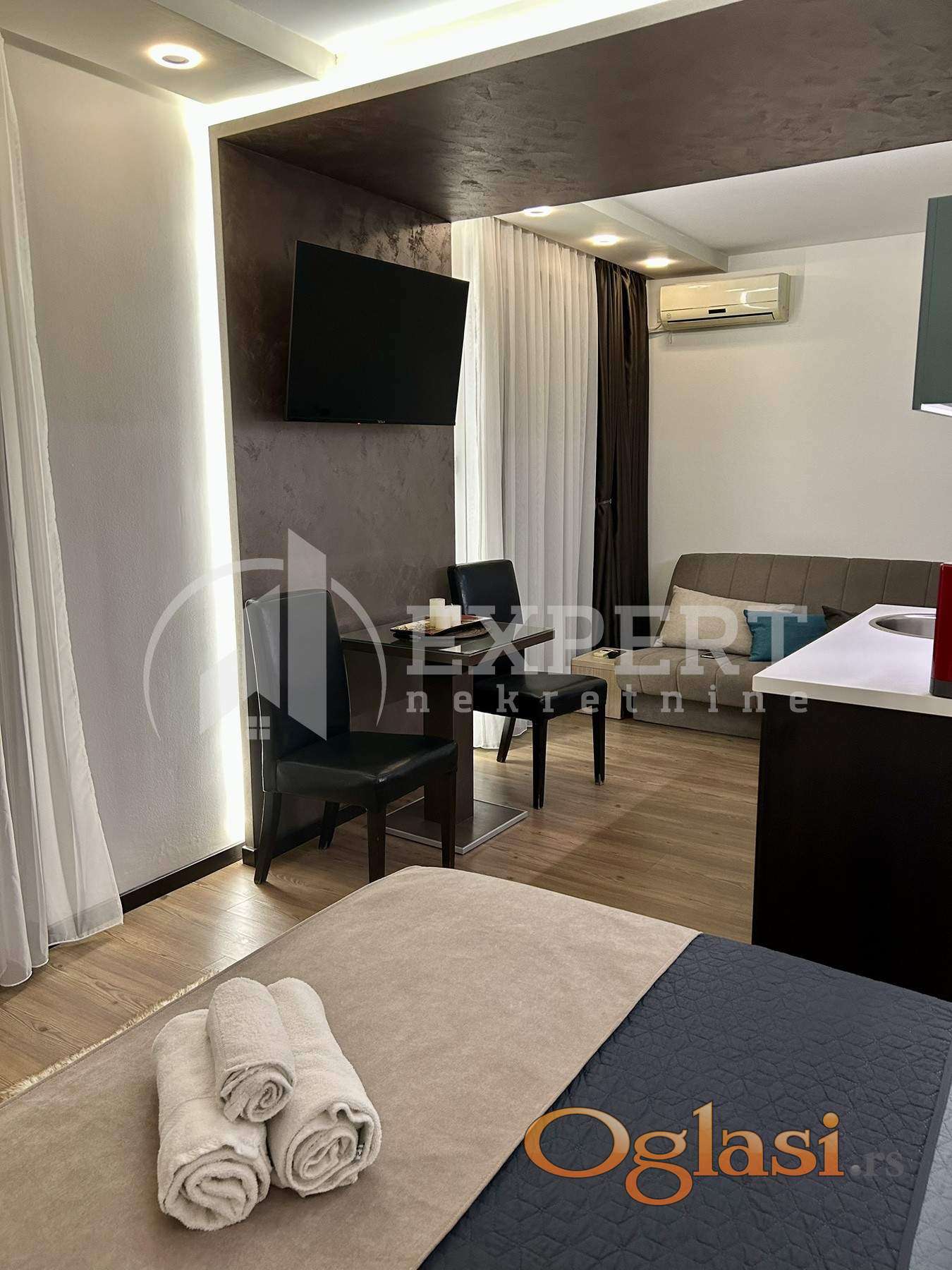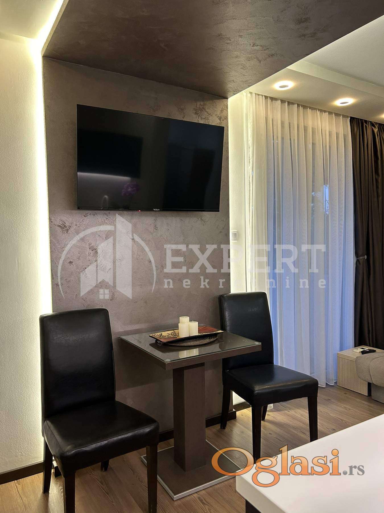 Izdaje se luksuzan apartman u Durlanu, preko puta Niteksa. Nalazi se na drugom spratu u stambenoj zgradi novije gradnje. Stan je kompletno renoviran jula 2023, sa svim novim stvarima, kako nameštajem tako i novim električnim uređajima. Površina apartmana je 30 m2. Sastoji se od višenamenske prostorije, dnevnog boravka, kuhinje i spavaćeg dela i kupatila. Poseduje i lepu veliku terasu koja je 5m2. Stan je lepo orjentisan i osvetljen. Grejanje u stanu je etažno sa kotlom na struju. Preko puta zgrade se nalazi besplatni parking. Zgrada se nalazi na pristupačnoj lokaciji pa će zakupcima u neposrednom okruženju na raspolaganju biti svi objekti od značaja za svakodnevni život. U cenu zakupa su uračunati svi troškovi, zamena posteljine i peškira i čišćenje dva puta mesečno. Izdaje se ozbiljnim zakupcima na duži vremenski period. Obavezan depozit u visini jedne mesečne kirije.