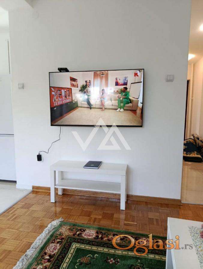 Kompletno renoviran, namešten novim stvarima, nov bračni krevet u spavaćoj sobi, jugoistočno orijentisan, u zelenilu. Vrlo miran kraj, škola i vrtić u blizini. Preko puta parka, parking uvek dostupan. Brojne prodavnice za svakodnevne kupovine na par koraka, u blizini TC Aviv park, TC Konjarnik, Beo centar. Odlično povezan sa nekoliko autobuskih linija sa raznim delovima grada. Depozit u visini jedne kirije.