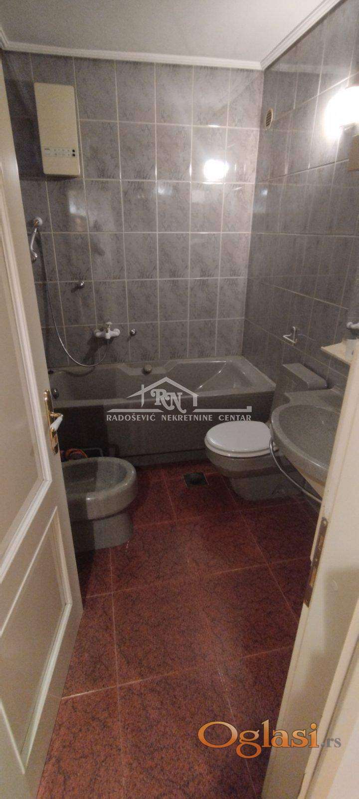 U prilici smo da Vam ponudimo odličan trosoban stan, u strogom centru grada, na prvom spratu, u zgradi starije gradnje sa liftom. Sastoji se od dnevne sobe, trpezarije sa kuhinjom, veće spavaće sobe, manje spavaće sobe i dva toaleta. U dvorištu zgrade se nalazi parking mesto koje ide uz stan. Stan se izdaje na duži vremenski period. Troškovi: Infostan- 20.000 din, održavanje zrade -1.400 din.
