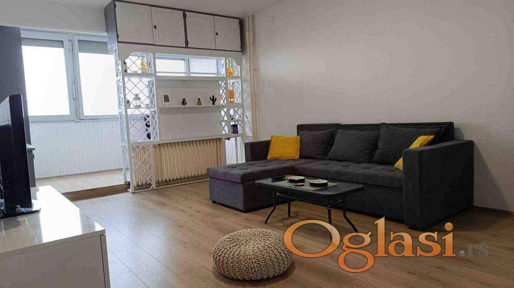 Jednosoban, renoviran, prostran, opremljen (Novo: Ugradna rerna sa pločom, mašina za pranje veša; Korišćeno: frižider, televizor) stan u Ulici Vojvode Stepe kod Voždovačke crkve.