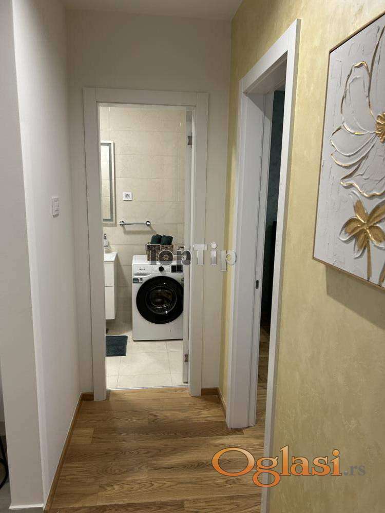 Nov jednoiposoban stan u novom delu Prozivke (SMB zgrada),53m2, posebno dizajniran, opremljen modernim i veoma kvalitetnim nameštajem, stan ima pripadajuće garažno mesto u koje se dolazi liftom iz stana.