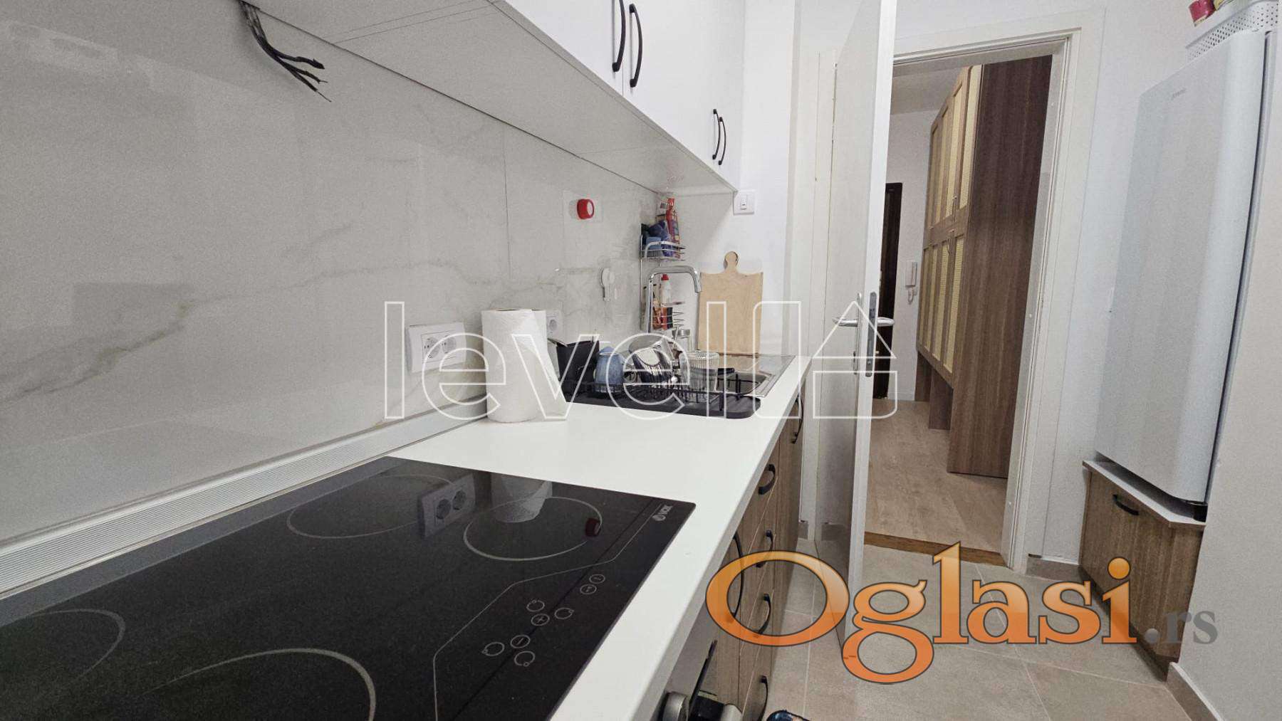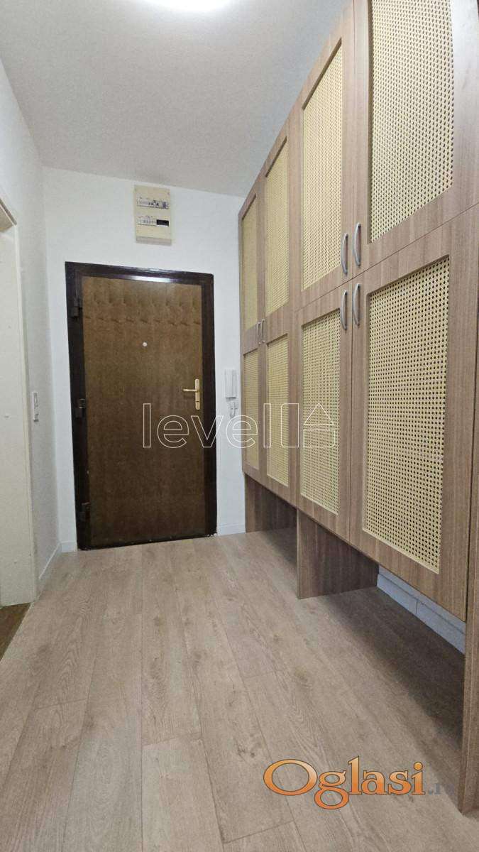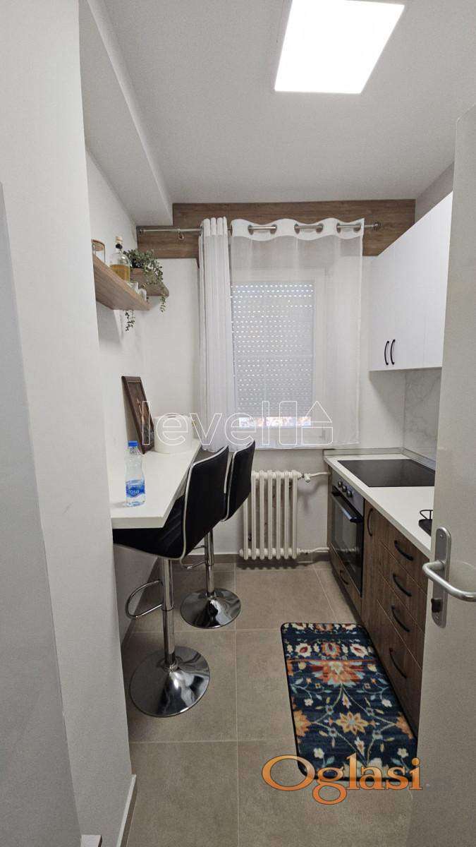 Stan se nalazi na 3. spratu novije zgrade sa liftom, poseduje terasu i potpuno je opremljen novim nameštajem i tehnikom. Raspored je funkcionalan: dnevna soba, spavaća soba, kuhinja sa trpezarijom, kupatilo i terasa.