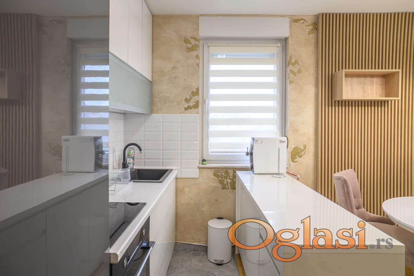 Izdaje se moderan, potpuno opremljen stan površine 67 m² u novijoj zgradi, u mirnom delu grada, preko puta Futoške pijace.