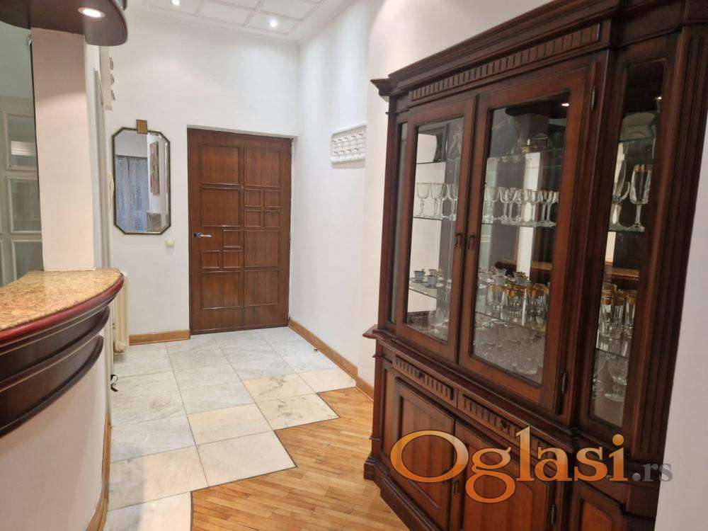 Na Vračaru se izdaje namešten trosoban stan od 115m² u blizini Kalenića. Stan se nalazi na prvom spratu četvorospratne zgrade iz 2000. godine sa liftom i recepcijom.