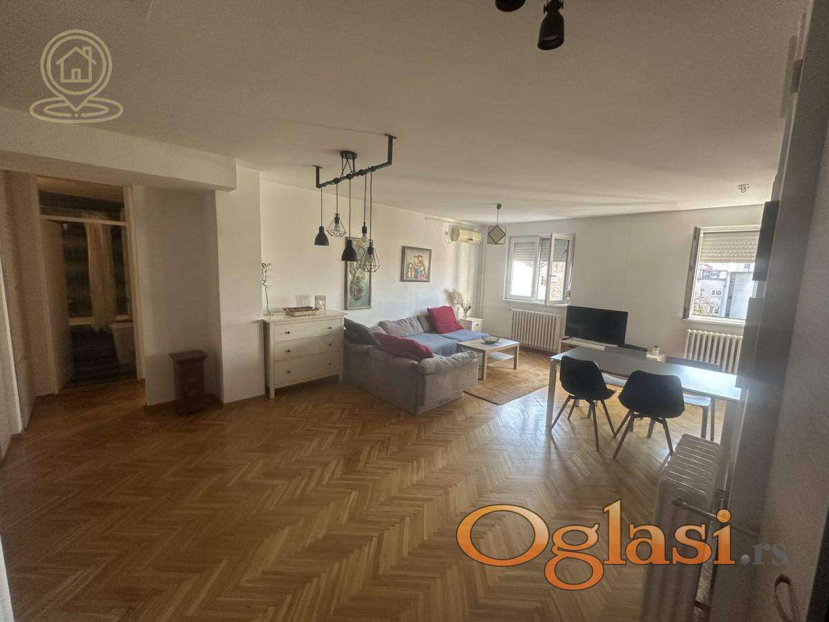 Svetao, prostran i funkcionalan stan u održavanoj zgradi na odličnoj lokaciji, svega nekoliko minuta hoda od Slavije.