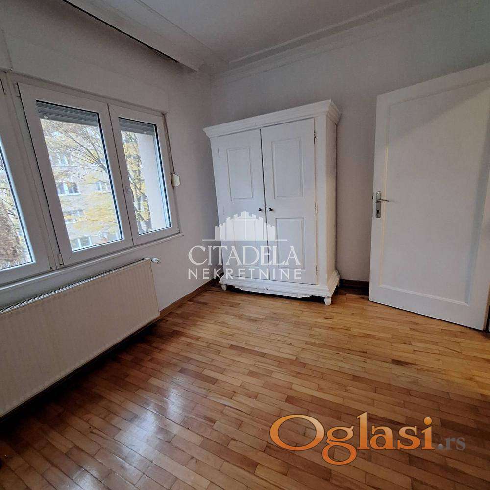 Stan u tipskoj zgradi u Profesorskoj koloniji okruženoj parkom i parkinzima. Ima urađenu fasadu, sa poboljšanom energetskom efikasnošću. U mirnom je okruženju iako je u blizini Cvijićeve i Starine Novaka. Stan je sa prostranim sobama, hodnikom, dnevnim boravkom, dvostrano orjentisan, svetao i tih. Grejanje je etažno na struju, troškovi mali, polunamešten je i odmah useljiv. Zgrada ima dva ulaza sa interfonom. Dozvoljeni su kućni ljubimci. Izdaje se polunamešten, prilagodljiv potrebama zakupca. PROSTORIJE: ulazni hol, dnevni boravak, dve spavaće sobe, kuhinja sa trpezarijom, kupatilo.