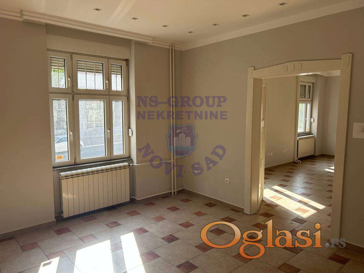 Prazan salonski stan od 85m², idealan za poslovne delatnosti poput kancelarija, agencija ili sličnih mirnih delatnosti, nalazi se na odličnoj lokaciji i odlikuje se prostranim i svetlim prostorijama te reprezentativnim izgledom. Stan je funkcionalnog rasporeda, poseduje kompletno postavljene kuhinjske elemente, više velikih prostorija pogodnih za radne kancelarije, kao i izdvojene sanitarne čvorove. Zahvaljujući svojoj strukturi i ambijentu koji pruža klasičan salonski stil, prostor je vrlo prilagodljiv različitim poslovnim potrebama i spreman je za brzo uređenje po meri zakupca. Enterijer ostavlja profesionalan utisak, što ga čini odličnim izborom za sve koji žele reprezentativan poslovni prostor.
