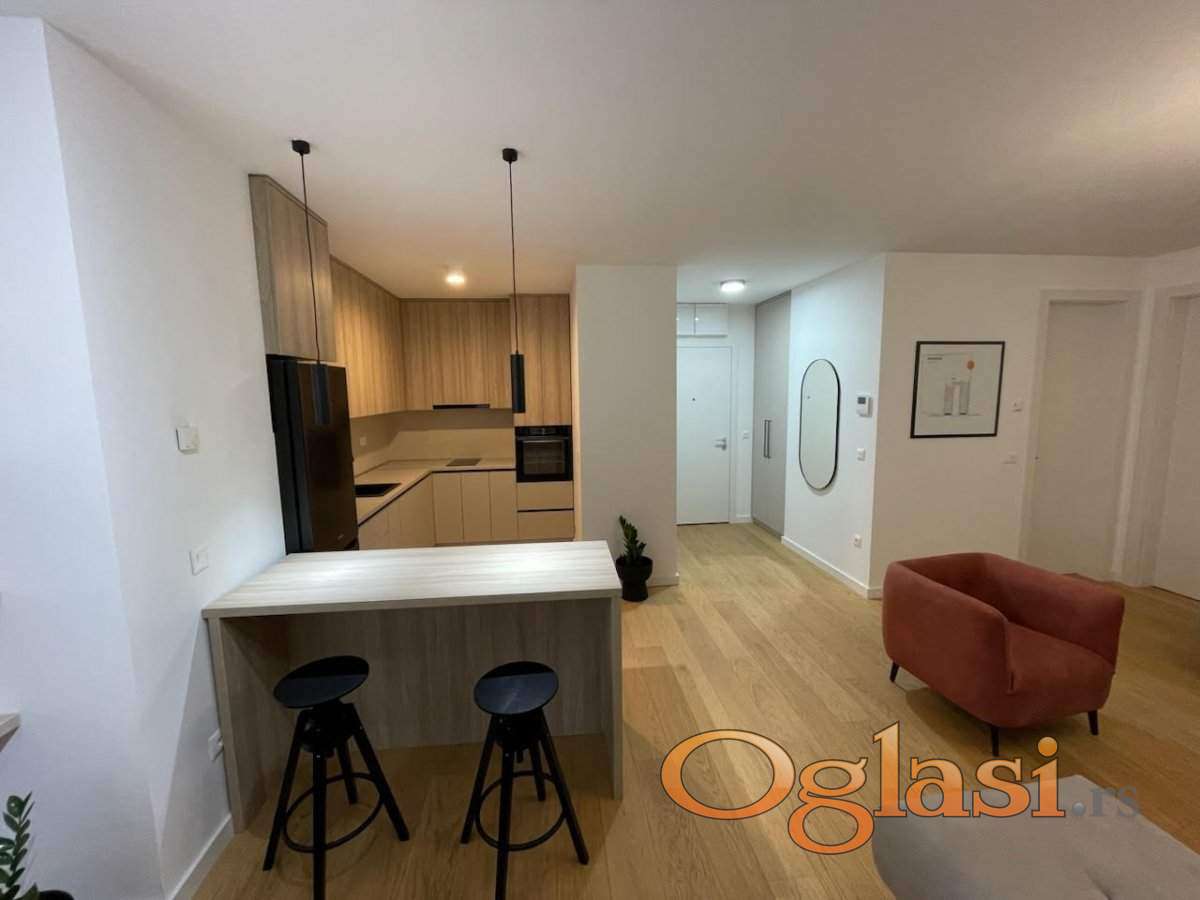 Kompletno opremljen, nov, dvosoban stan na izuzetnoj lokaciji u najužem centru grada. Stan se sastoji iz predsoblja, dnevne sobe, kuhinje, kupatila i spavaće sobe.