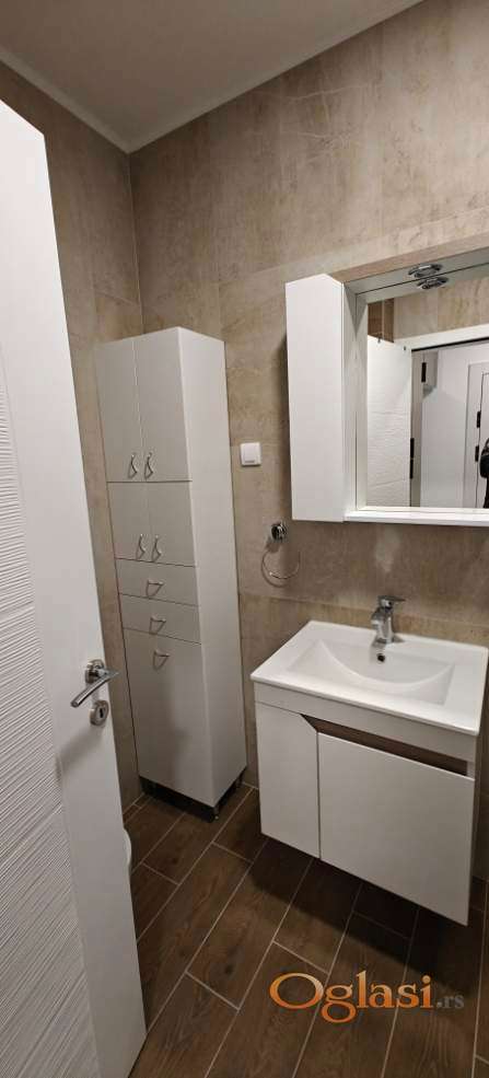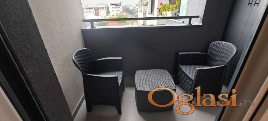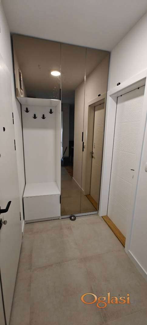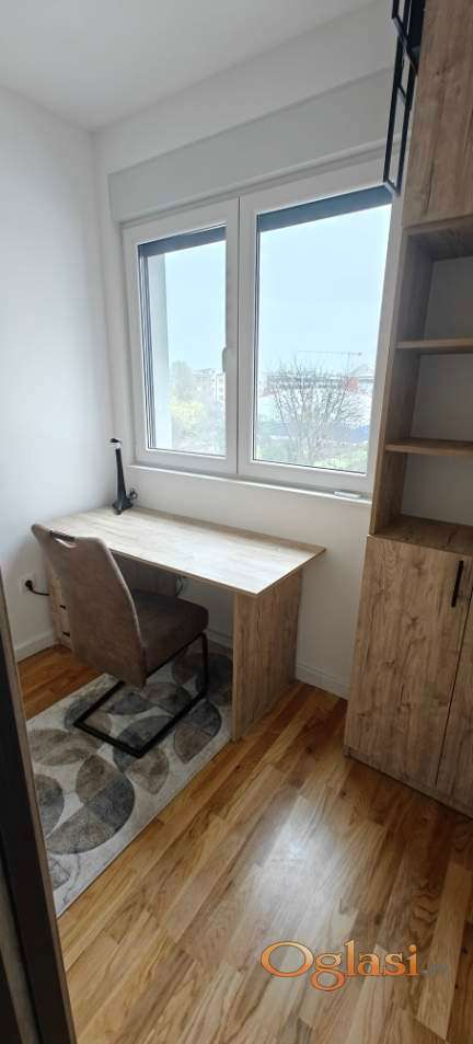 Vlasnik izdaje kompletno namešten, neuseljavan stan, sa novim stvarima u Bolmanskoj ulici i označenim pripadajućim parking mestom u dvorištu zgrade. Zgrada je završena i useljena 2025. Stan je 45 kvadrata, ima veliku dnevnu sobu sa trpezarijom i kuhinjom, posebnom spavaćom sobom i radnim delom u sklopu iste, terasu, dvorišno orjentiran na drugom spratu sa liftom. Grejanje je na gas, podno, tako da su troškovi mali. U stanu se nalaze ugaona garnitura, televizor u dnevnoj sobi, televizor u spavaćoj, mašina za veš, mašina za sušenje, kupatilski ormaric, staklena tuš kabina, veliki frižider sa zamrzivačem, mašina za sudove, kuhinja sa aspiratorom, komplet sudovima i tanjirima, sto sa 4 stolice za ručavanje koji može da se razvuče, veliki francuski ležaj sa ostavom za posteljinu, radni sto i stolica u radnom delu, 3 velika ormara-plakara, cipelarnik, sto i 2 stolice na terasi, inverter klima... kontakt telefon 065 8888 578