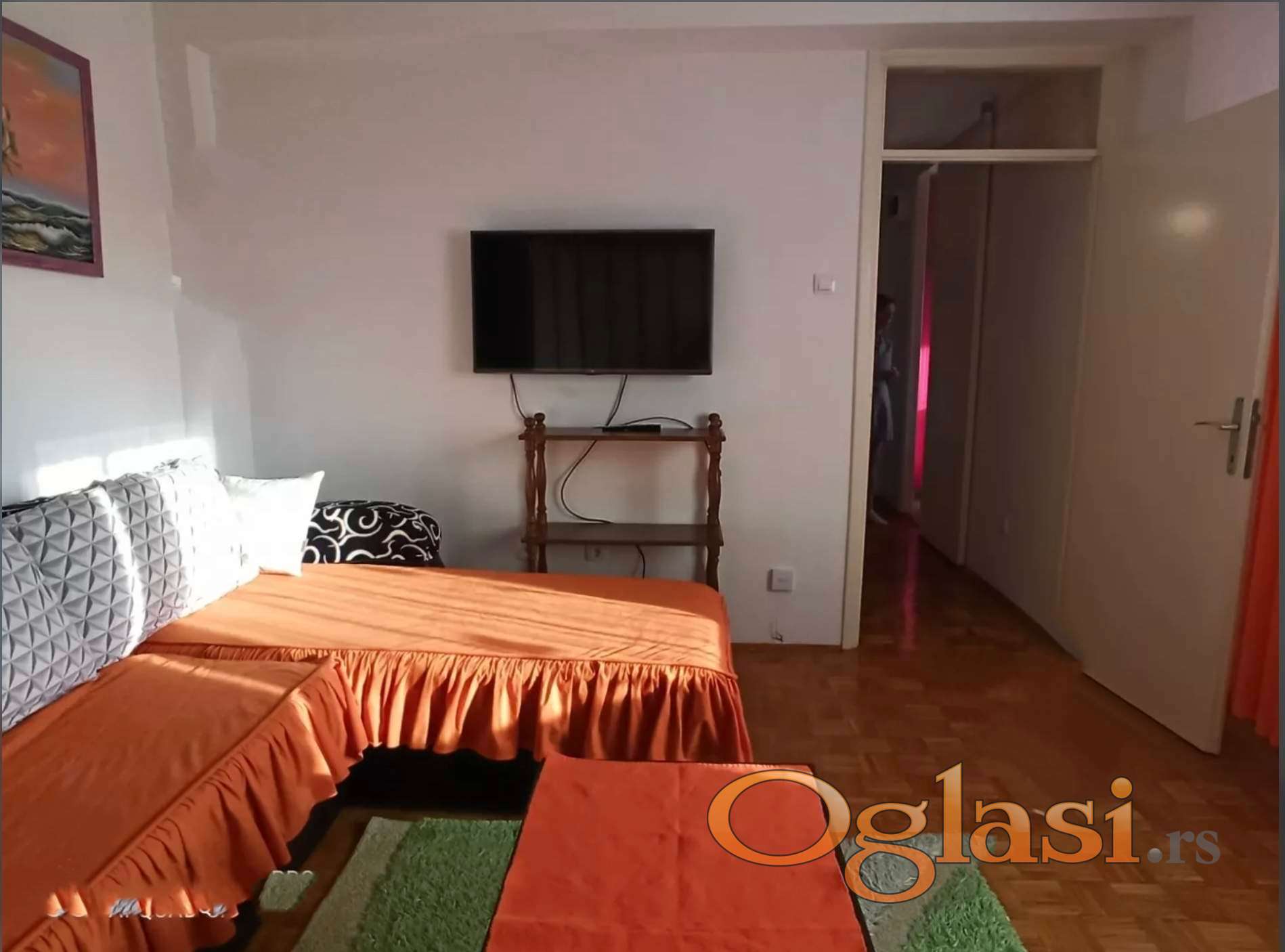 Opremljenost: TV, klima, veš mašina, kuhinjski elementi, frižider, zamrzivač, šporet, rerna, ležaj, plakar