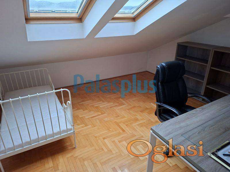 Izdajemo divan porodični stan u Energoprojektovoj zgradi na I spratu, dupleks sa dva kupatila, kompletno namešten. Stan je dvostrano orijentisan, od prostorija na prvom nivou ima predsoblje, dnevni boravak, spavaću sobu, kuhinju sa ostavom, trpezariju i terasu, na drugom nivou je smeštena još jedna spavaća soba i kupatilo, kao i veliki broj plakara za odlaganje. Stan je idealan za miran porodični život jer se u zaštićenom delu nalazi igralište za decu. Stan ima pripadajuće parking mesto. Izdaje se na duži period, a plaćanje zakupnine je mesečno uz 1 depozit.