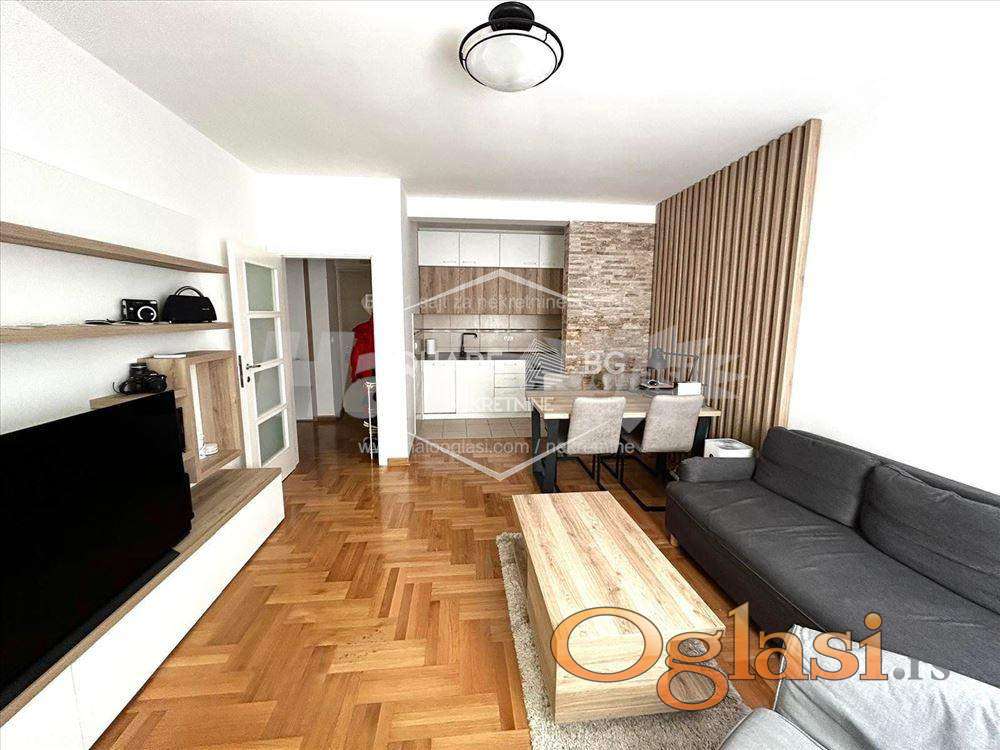 Na sjajnoj lokaciji na Vracaru u Prote Mateje, par metara od Njegoševe, izdaje se stan od 50 m², u novoj zgradi kompletno i udobno opremljen.